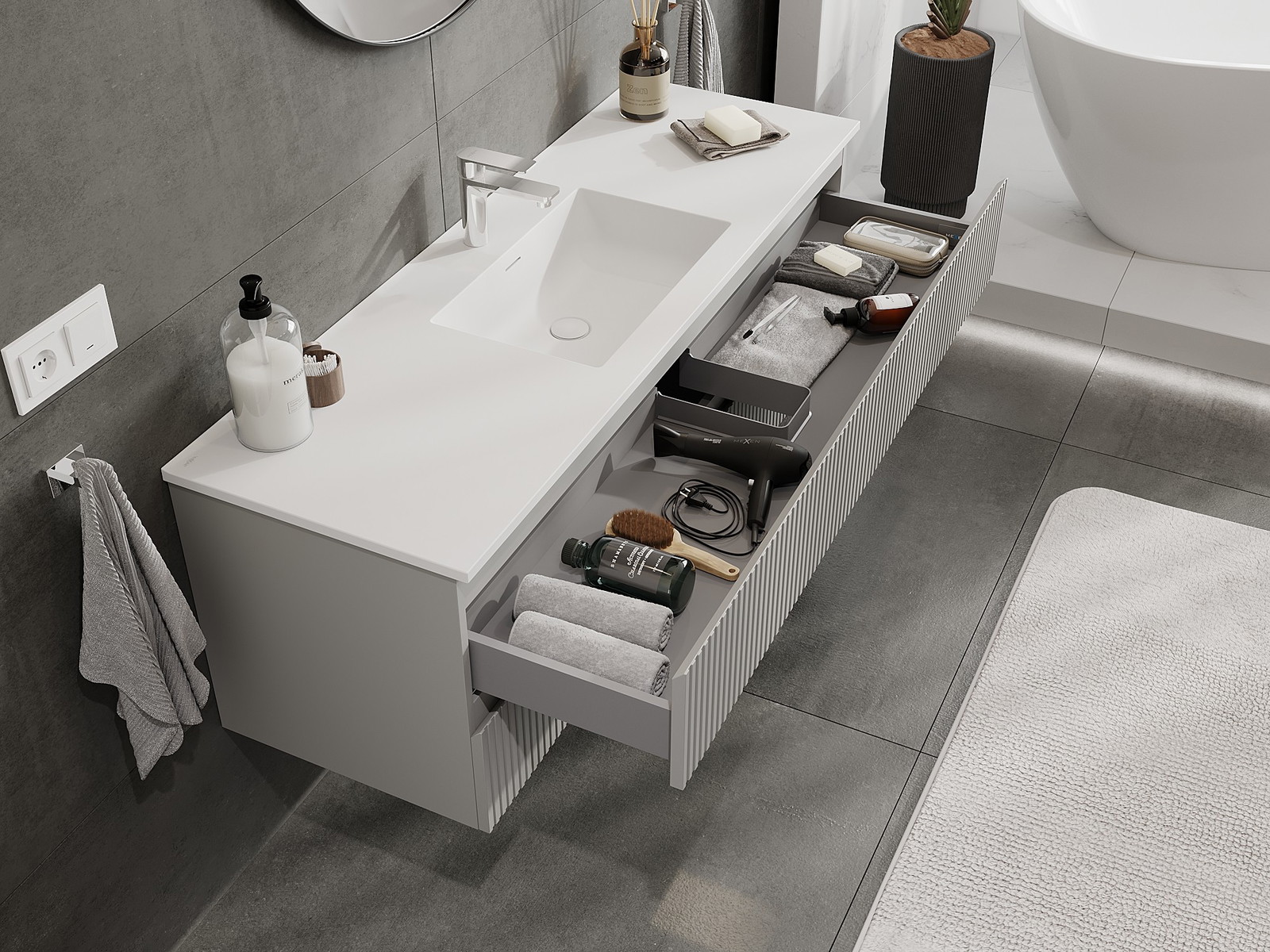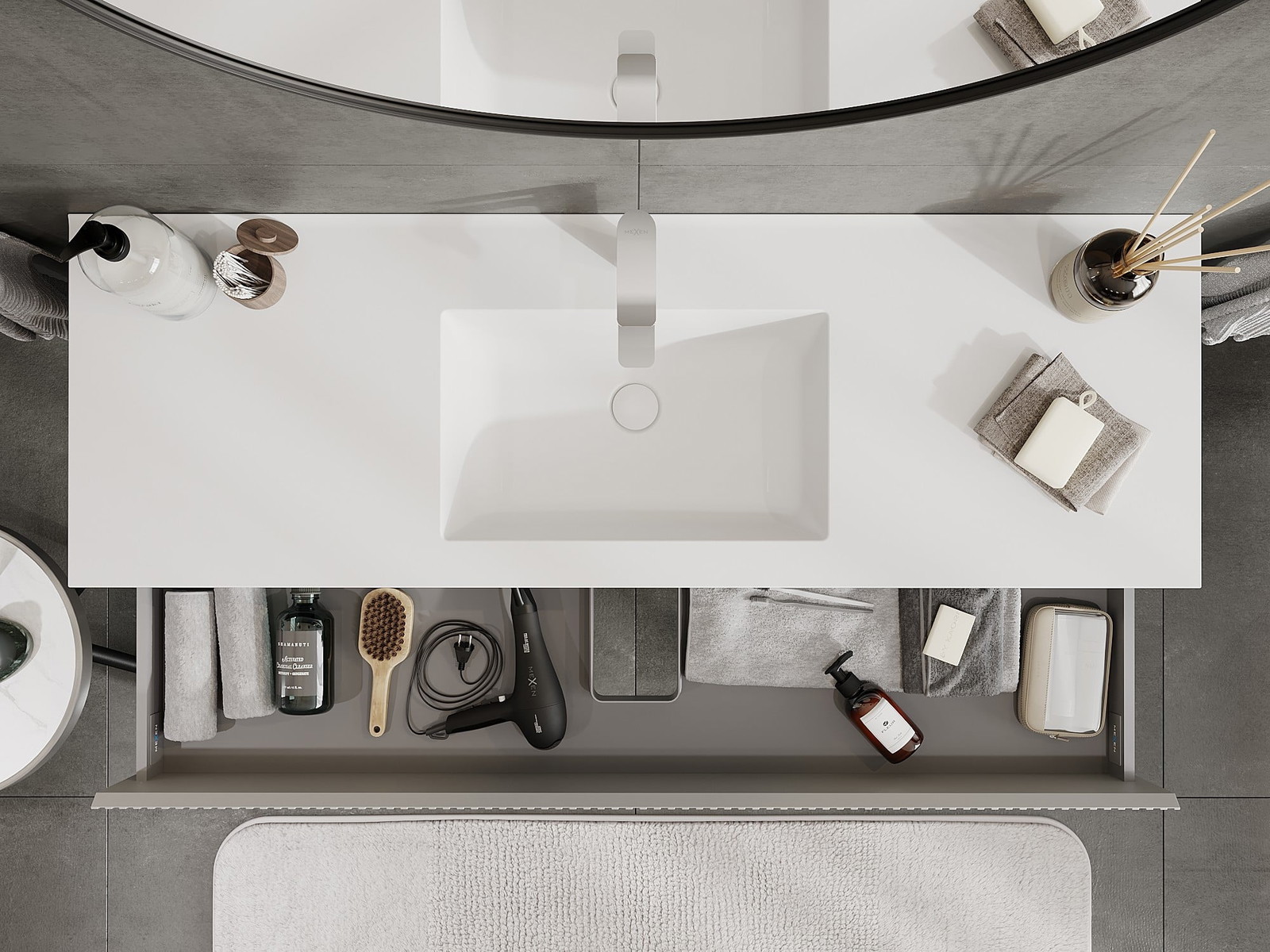 Our modular bathroom furniture can be combined in various colour configurations, allowing for complete personalisation. You can choose both the appearance and functions of individual elements, enabling you to adapt the furniture to your own stylistic and functional preferences.