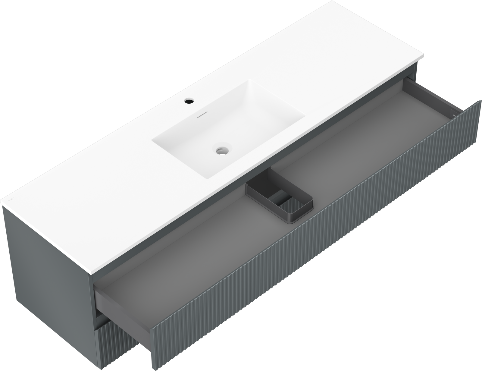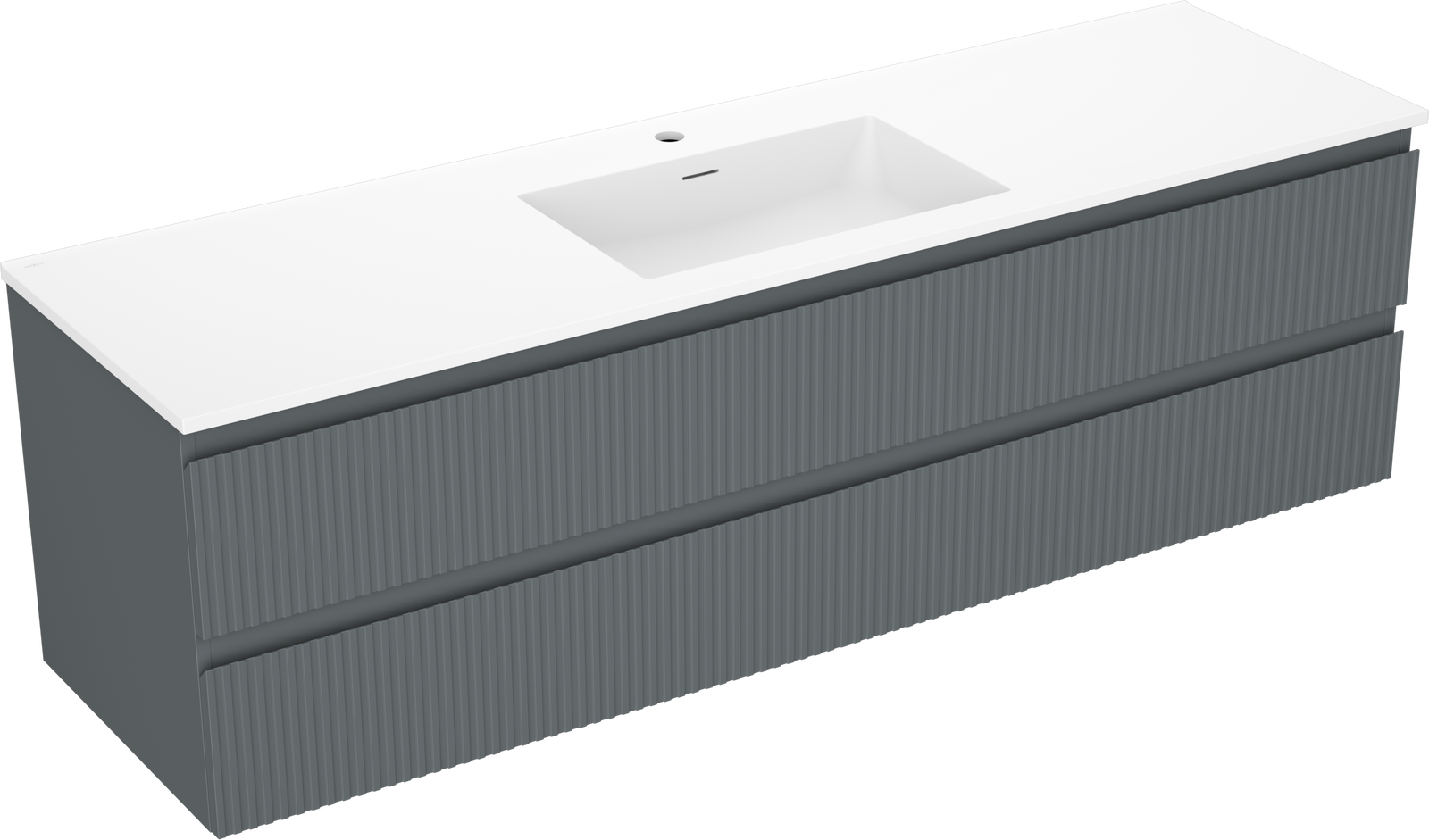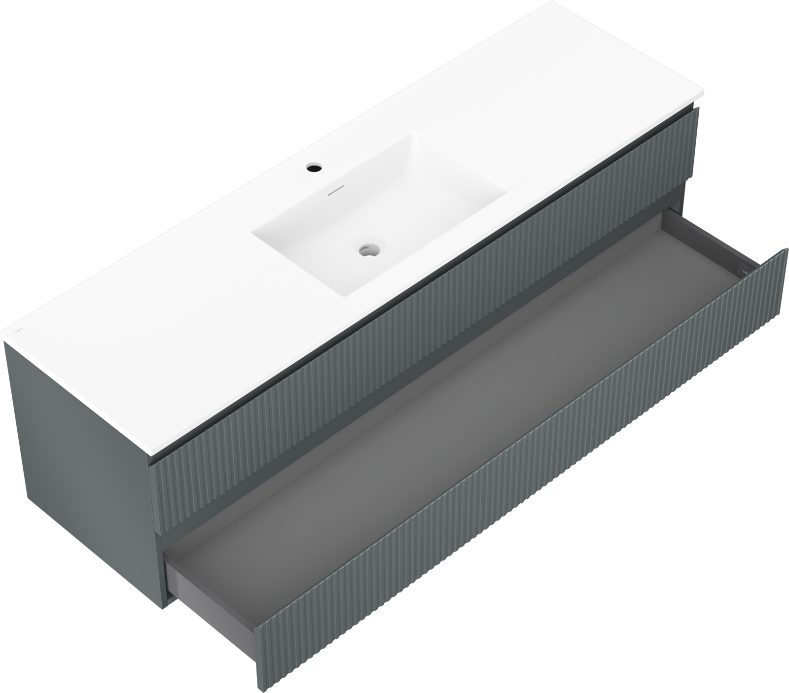 Mexen Rivel bathroom cabinet 160 cm with sink Otis, 2 drawers, fluted, graphite matte/white matte - 91A20-16047-2-BFF66-W18M