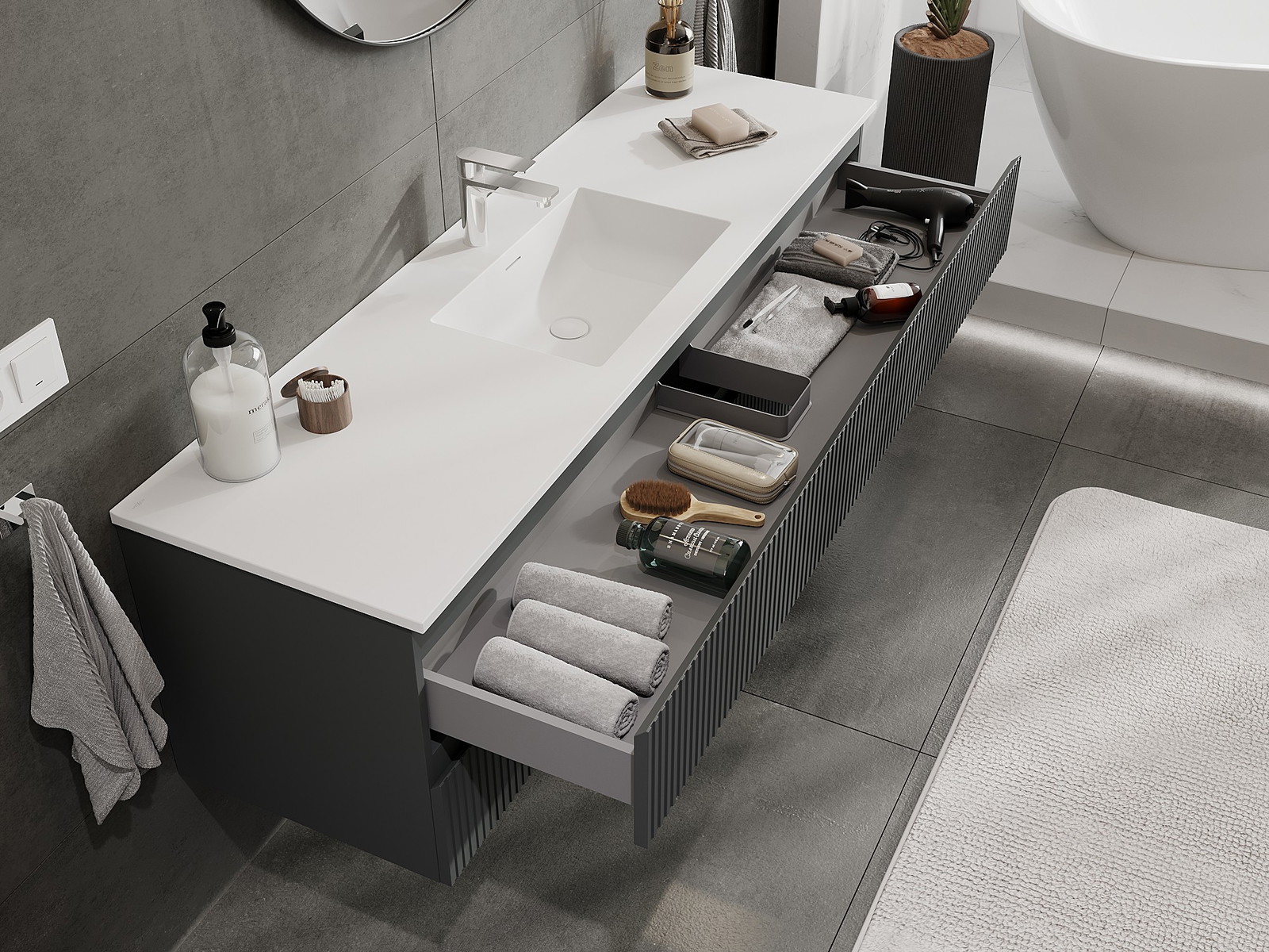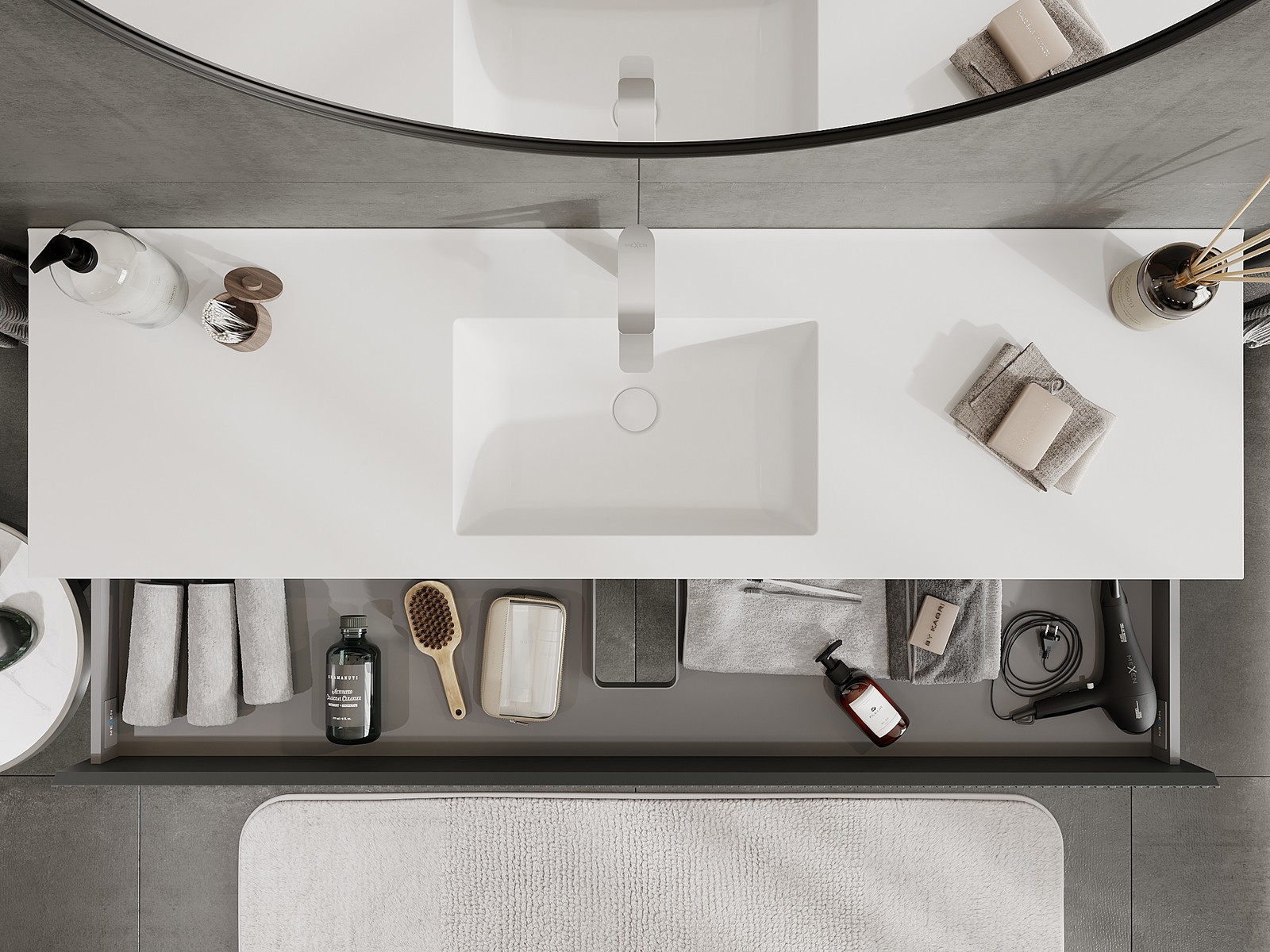 Our modular bathroom furniture can be combined in various colour configurations, allowing for complete personalisation. You can choose both the appearance and functions of individual elements, enabling you to adapt the furniture to your own stylistic and functional preferences.
