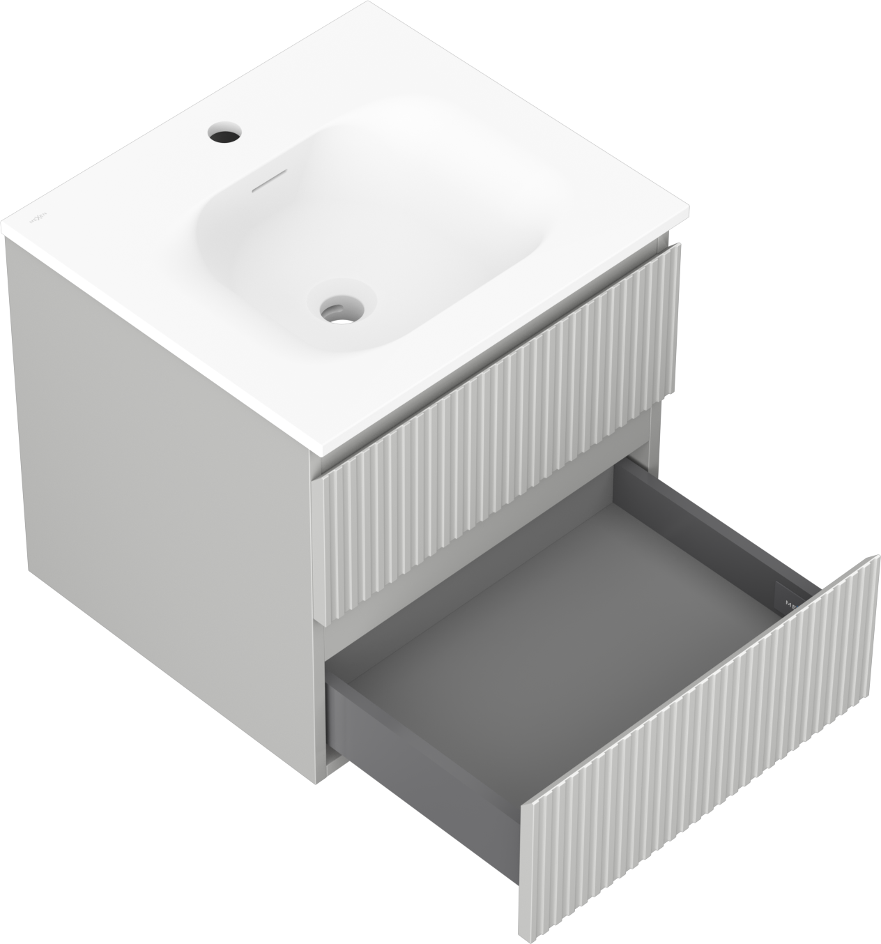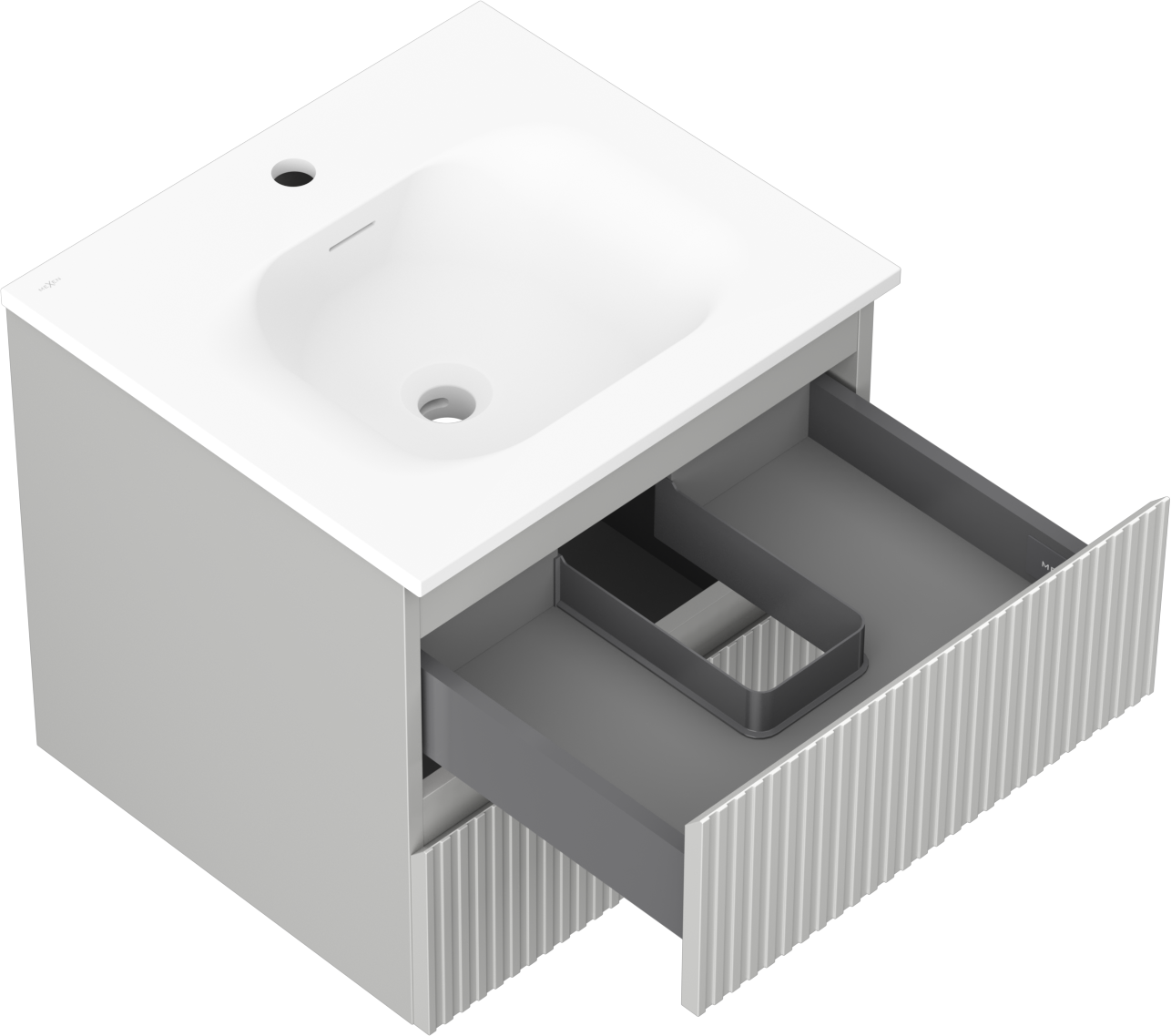 The cutout in the drawer is designed in such a way as to accommodate the siphon, which is essential in sink installations. This allows the furniture to be fully functional without having to give up drawer space for the installation.