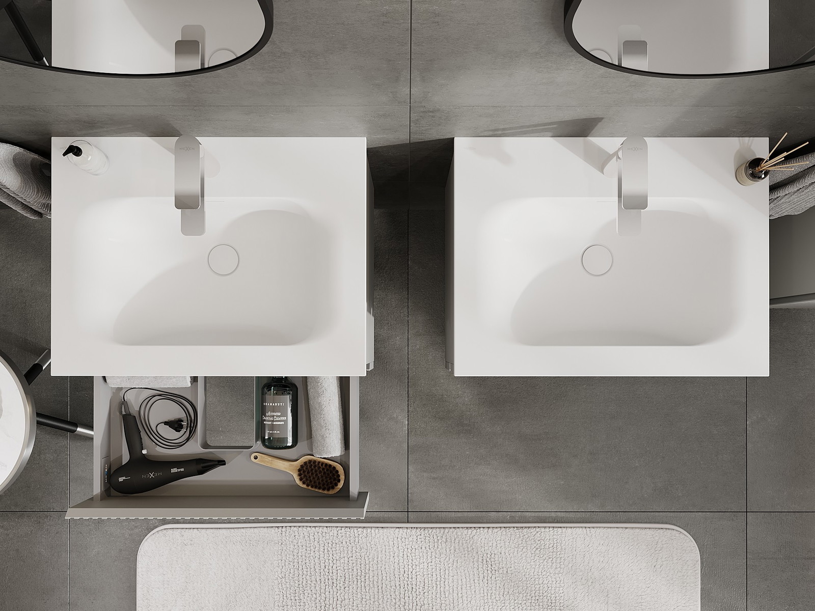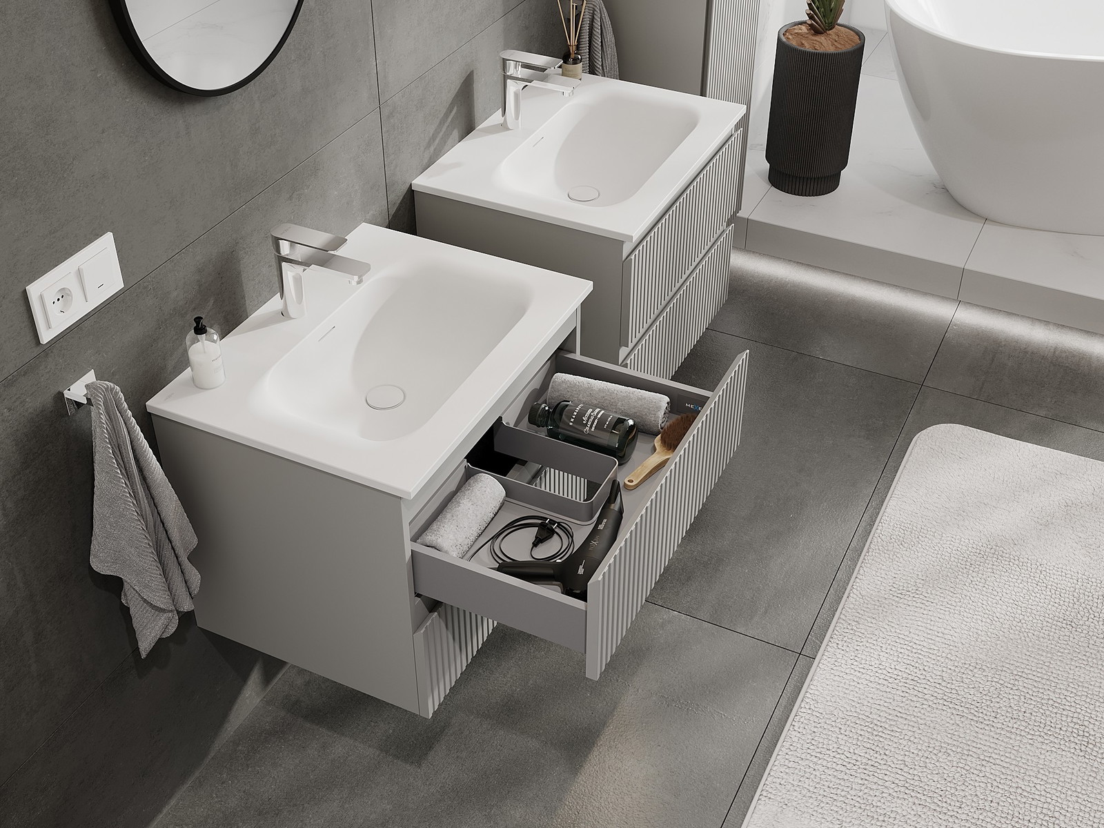 Our modular bathroom furniture can be combined in various colour configurations, allowing for complete personalisation. You can choose both the appearance and functions of individual elements, enabling you to adapt the furniture to your own stylistic and functional preferences.