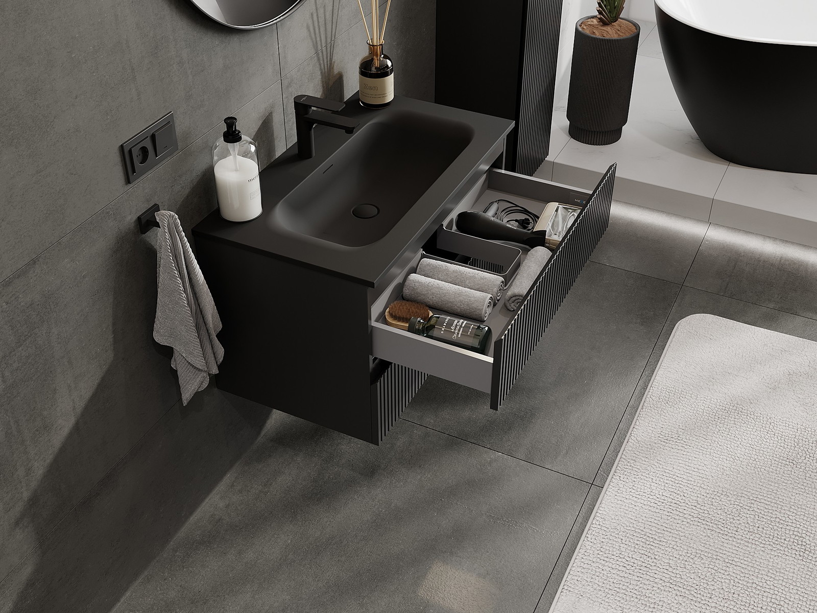 Our modular bathroom furniture can be combined in various colour configurations, allowing for complete personalisation. You can choose both the appearance and functions of individual elements, enabling you to adapt the furniture to your own stylistic and functional preferences.