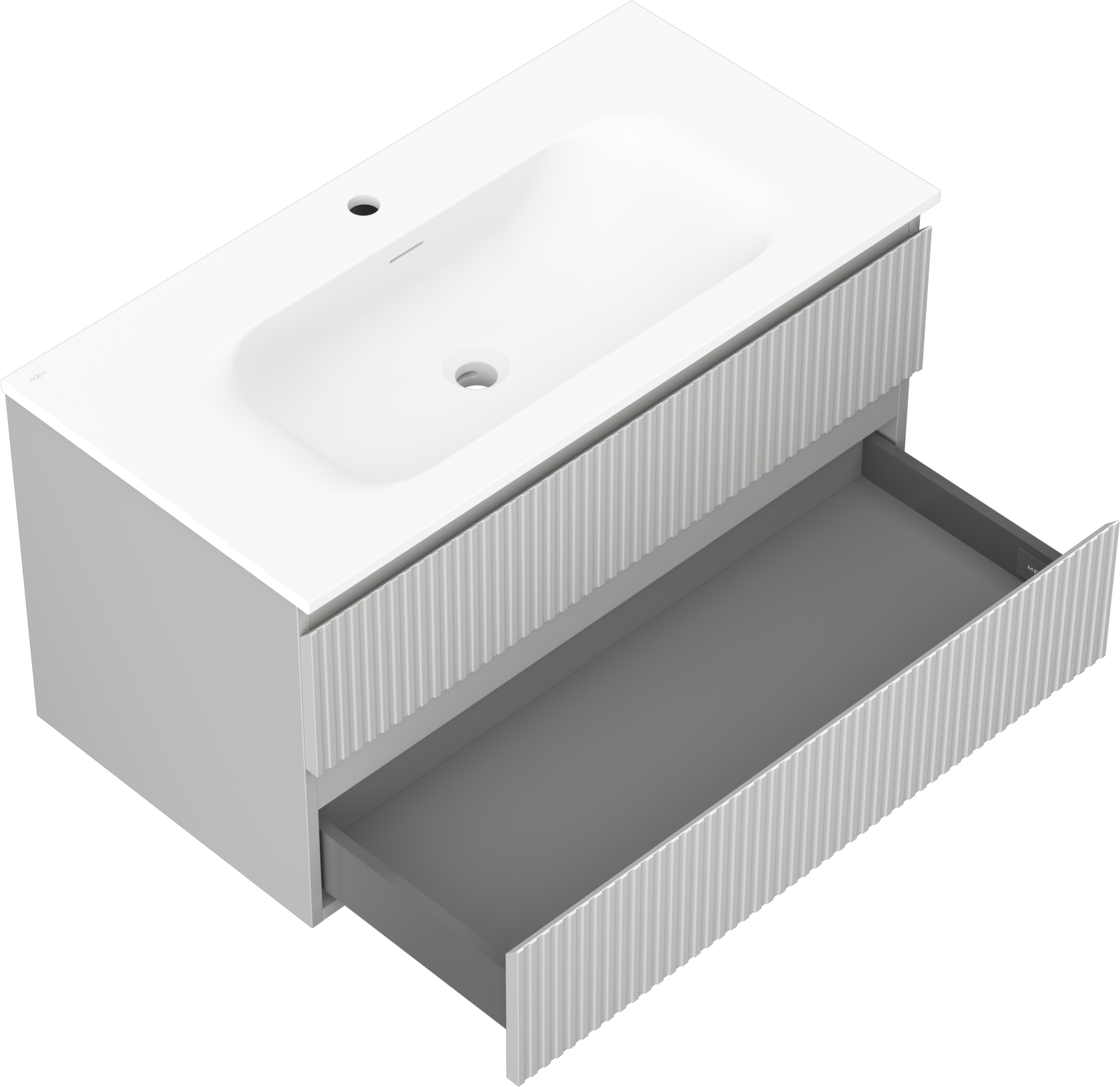 The cutout in the drawer is designed in such a way as to accommodate the siphon, which is essential in sink installations. This allows the furniture to be fully functional without having to give up drawer space for the installation.