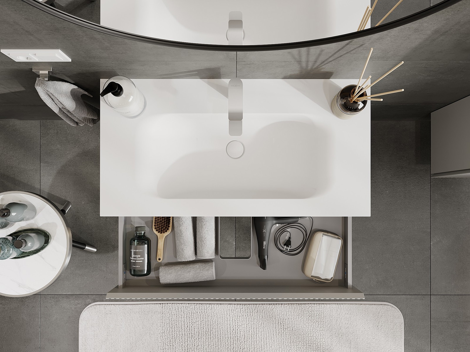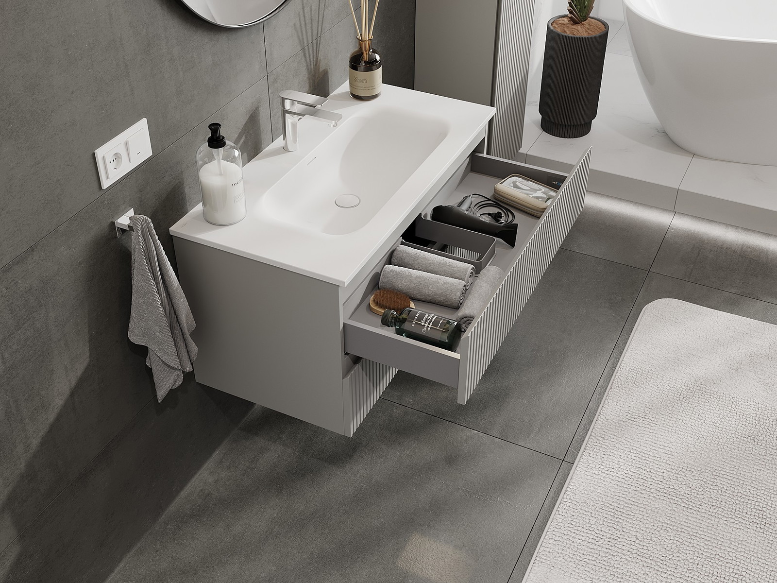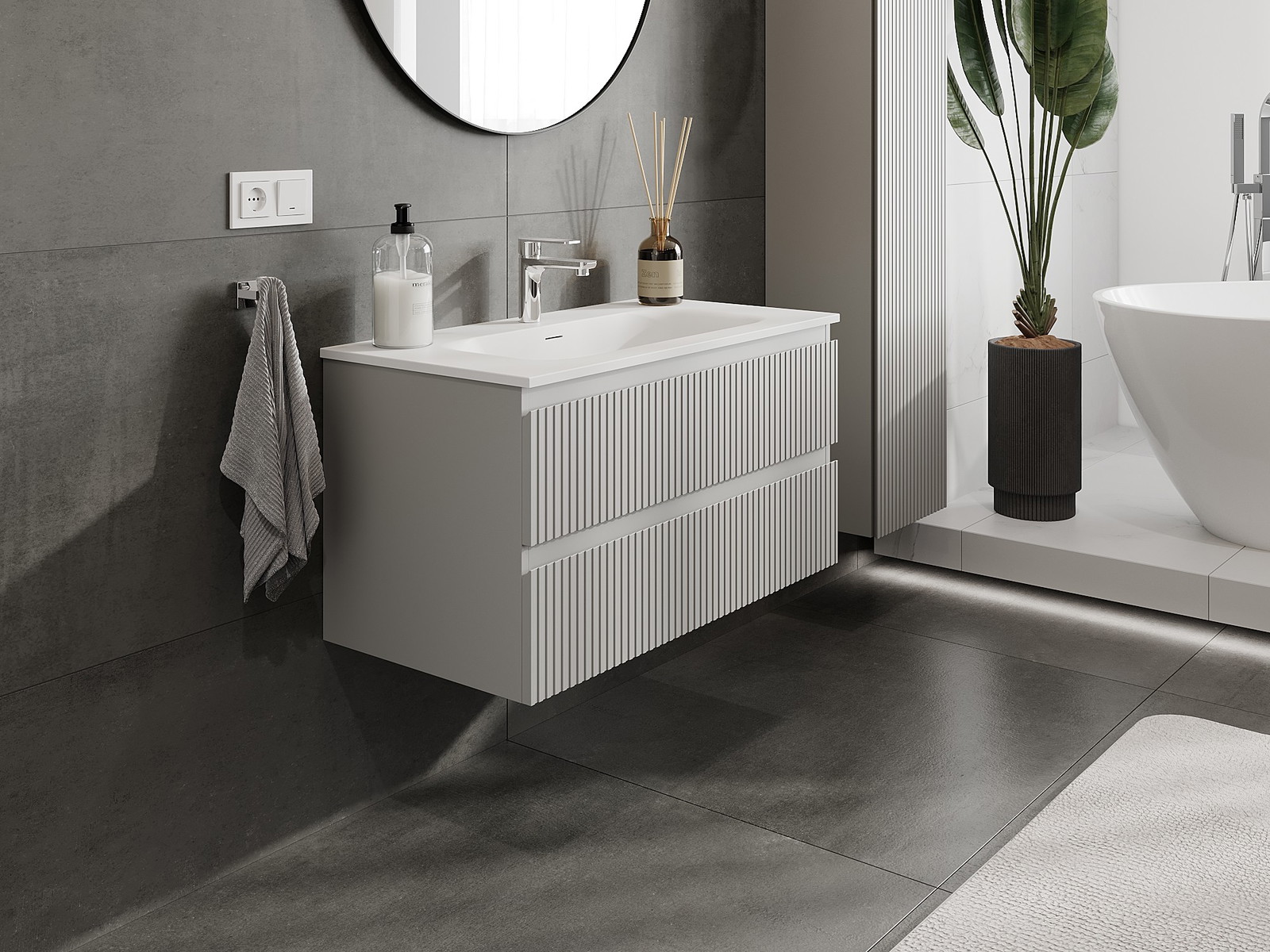 Our modular bathroom furniture can be combined in various colour configurations, allowing for complete personalisation. You can choose both the appearance and functions of individual elements, enabling you to adapt the furniture to your own stylistic and functional preferences.