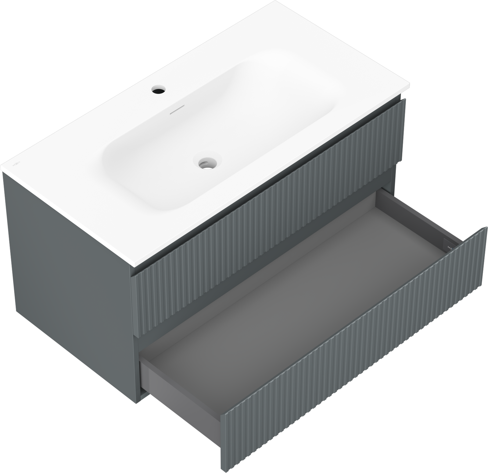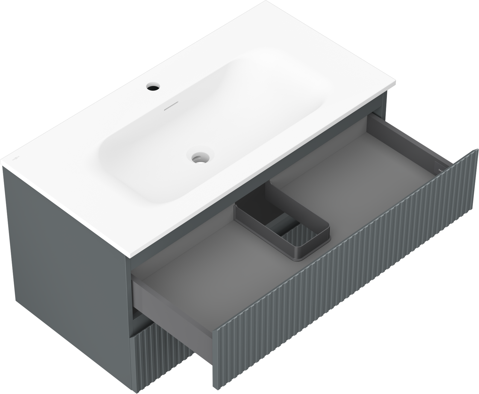The cutout in the drawer is designed in such a way as to accommodate the siphon, which is essential in sink installations. This allows the furniture to be fully functional without having to give up drawer space for the installation.