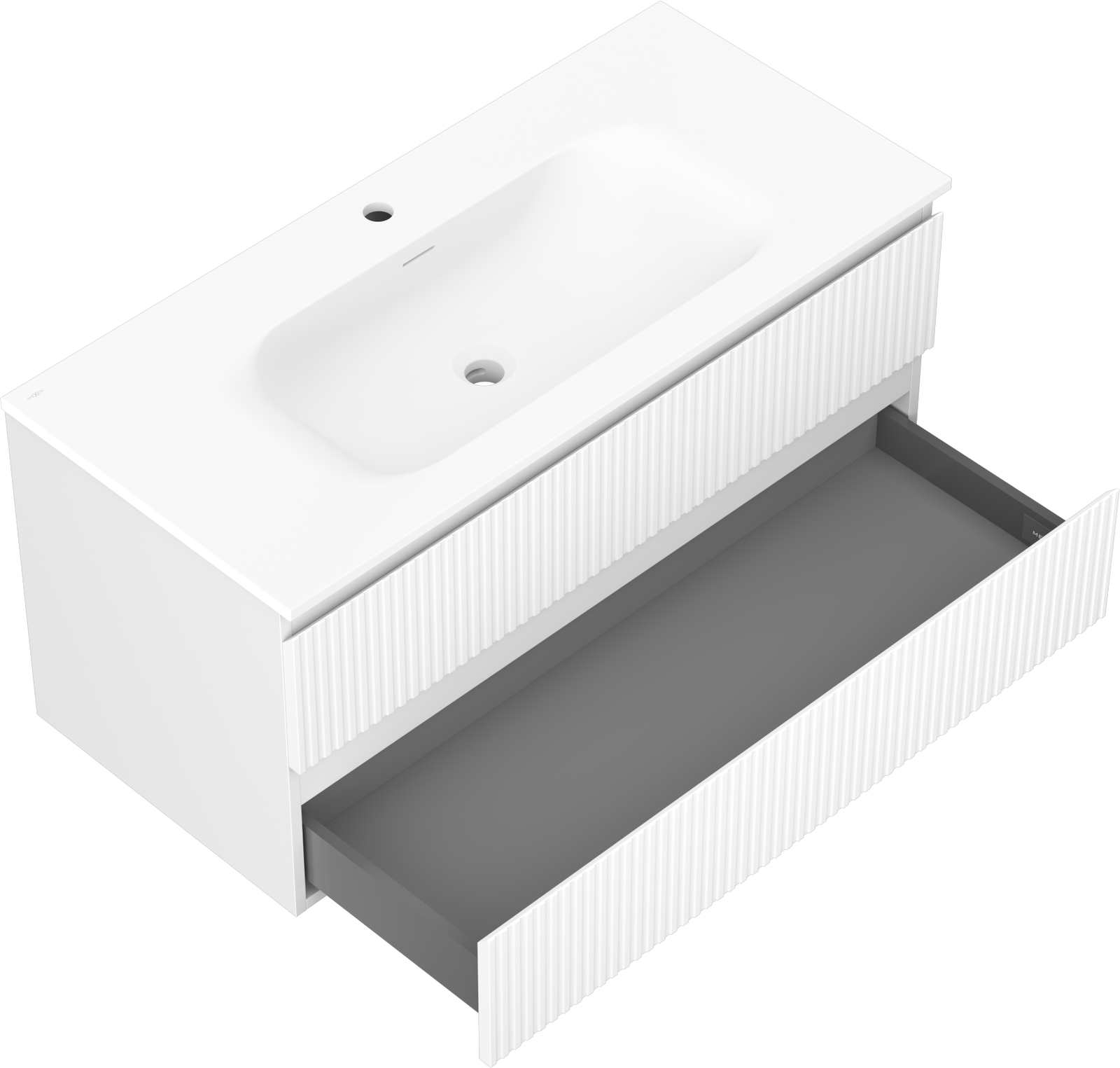 The cutout in the drawer is designed in such a way as to accommodate the siphon, which is essential in sink installations. This allows the furniture to be fully functional without having to give up drawer space for the installation.