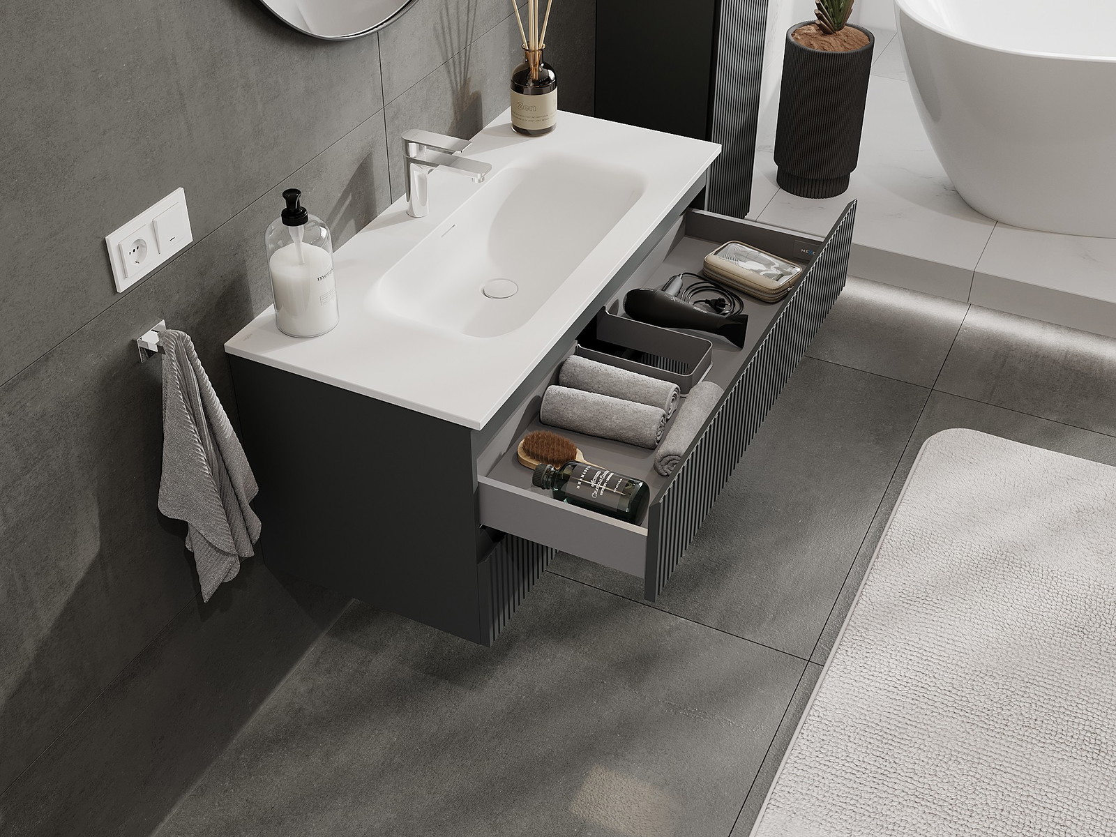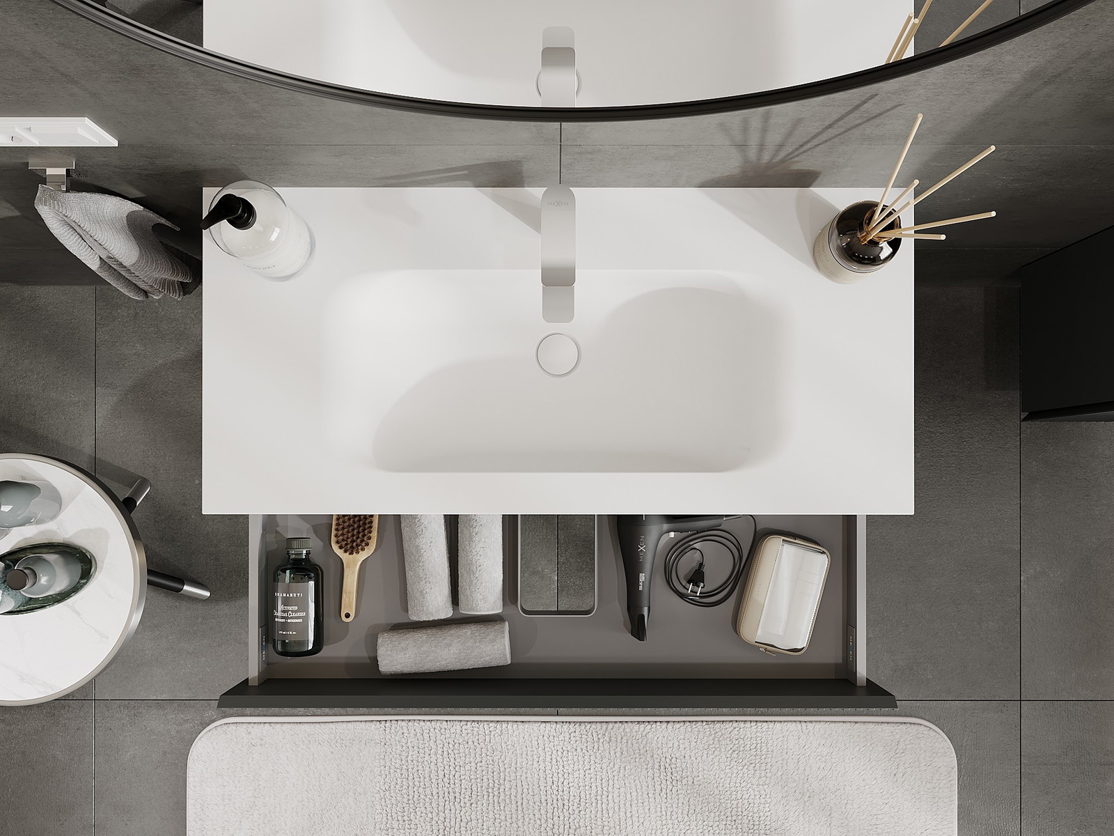 Our modular bathroom furniture can be combined in various colour configurations, allowing for complete personalisation. You can choose both the appearance and functions of individual elements, enabling you to adapt the furniture to your own stylistic and functional preferences.