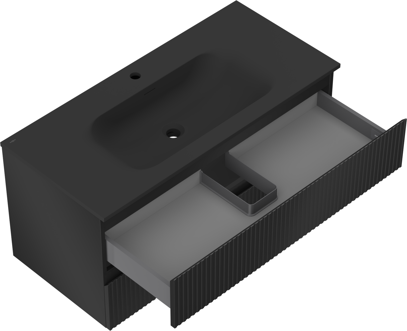 The cutout in the drawer is designed in such a way as to accommodate the siphon, which is essential in sink installations. This allows the furniture to be fully functional without having to give up drawer space for the installation.