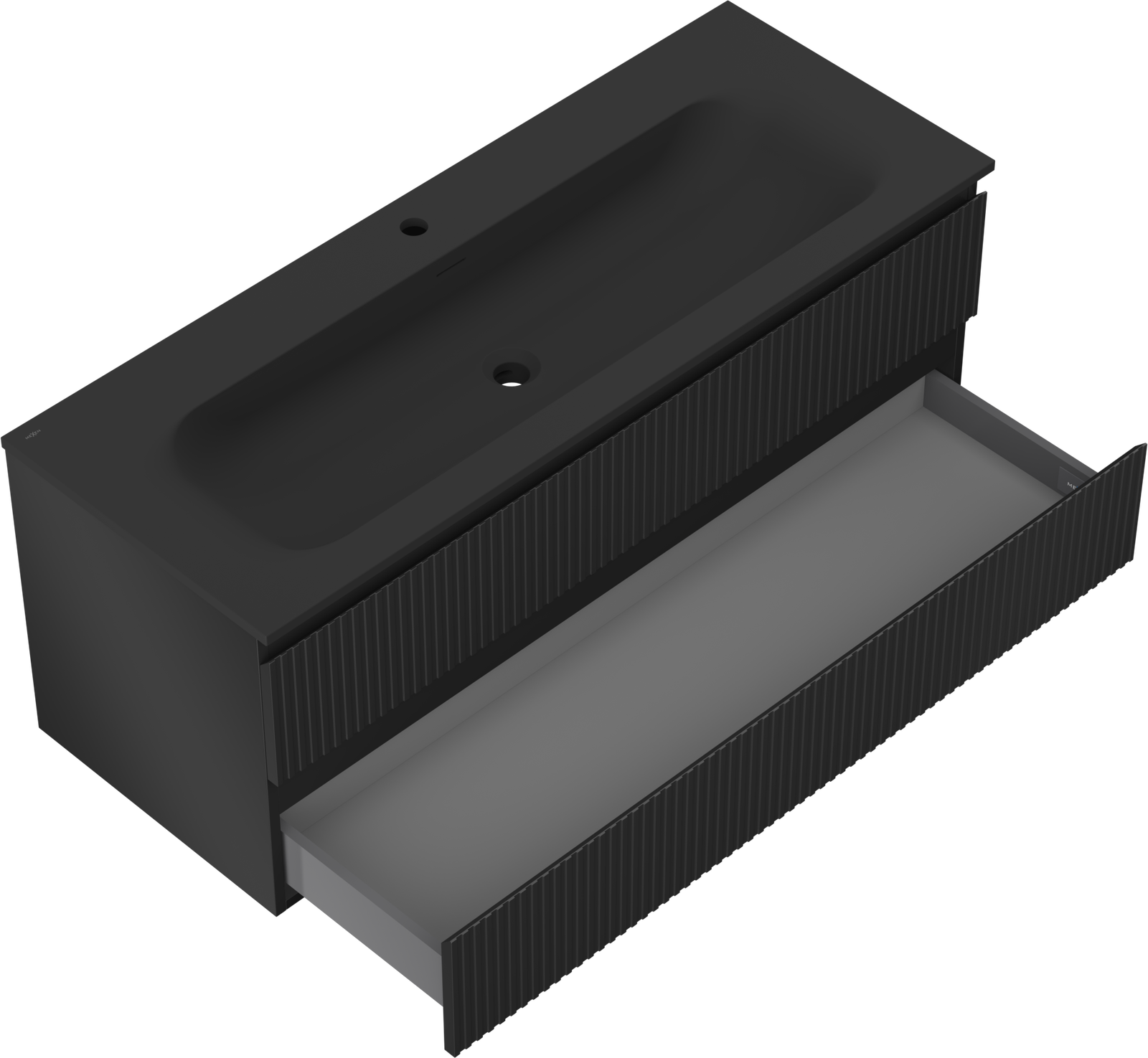 The cutout in the drawer is designed in such a way as to accommodate the siphon, which is essential in sink installations. This allows the furniture to be fully functional without having to give up drawer space for the installation.