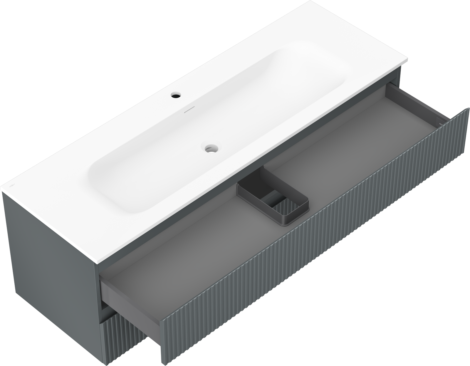 The cutout in the drawer is designed in such a way as to accommodate the siphon, which is essential in sink installations. This allows the furniture to be fully functional without having to give up drawer space for the installation.