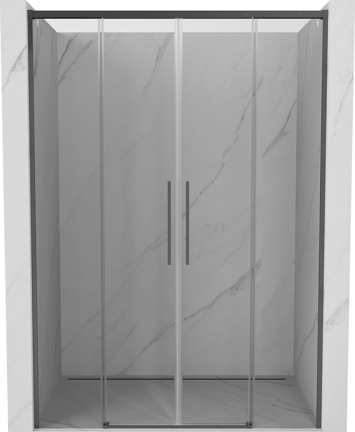 Mexen Rox Duo 150 cm Sliding Shower Doors, Transparent, Brushed Gun Gray - 8C2-150-002-66-00
