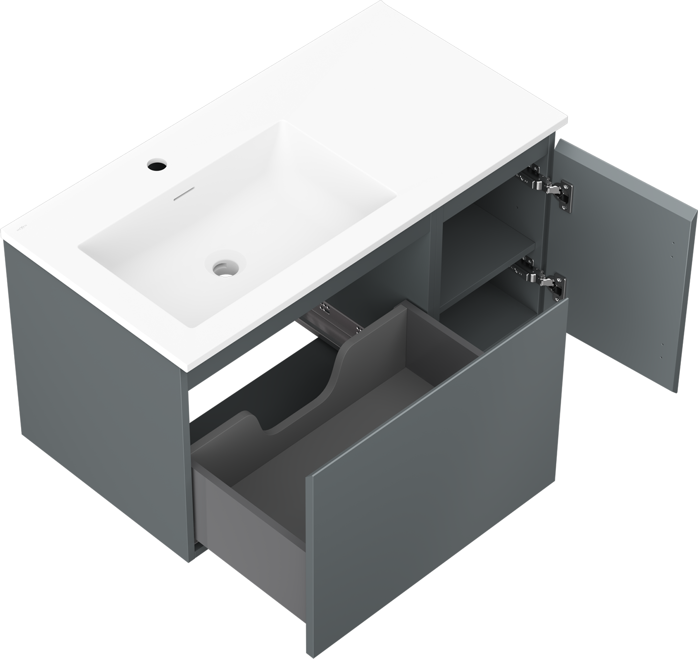 Mexen Orio bathroom cabinet 90 cm with left Otis sink, 1S, 1D, graphite matte/white matte - 91A13-09047-3-BBFF66-W18L01