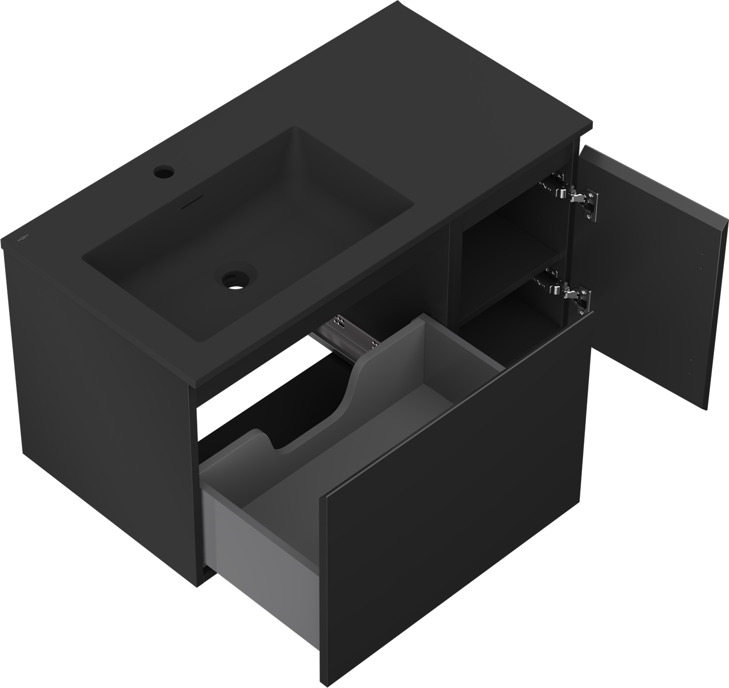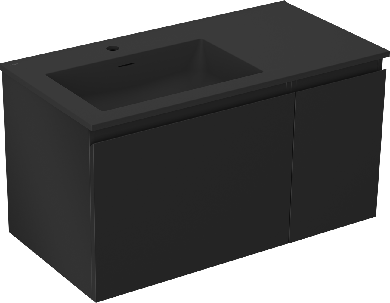 Mexen Orio bathroom cabinet 90 cm with left Otis sink, 1S, 1D, matte black - 91A13-09047-3-BBFF71-W18L71
