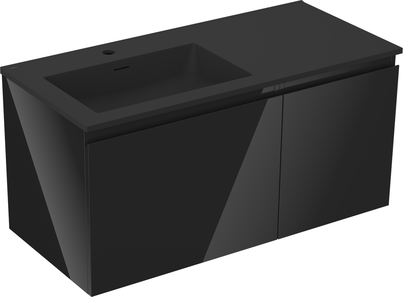 Mexen Orio 100 cm Bathroom Cabinet with Otis Left Sink, 1S, 1D, Black Gloss/Black Matte - 91A13-10047-3-BBFF70-W18L71