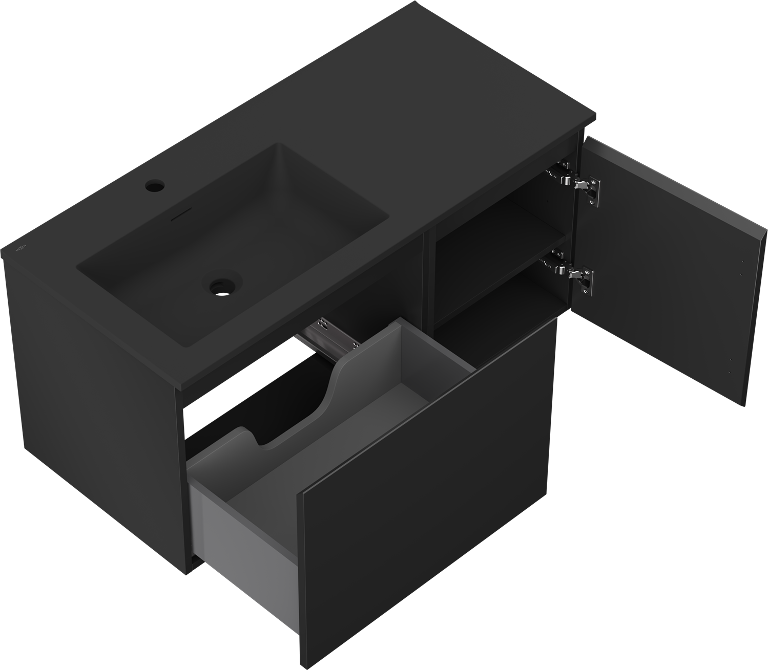 Mexen Orio bathroom cabinet 100 cm with Otis left sink, 1S, 1D, black matte - 91A13-10047-3-BBFF71-W18L71