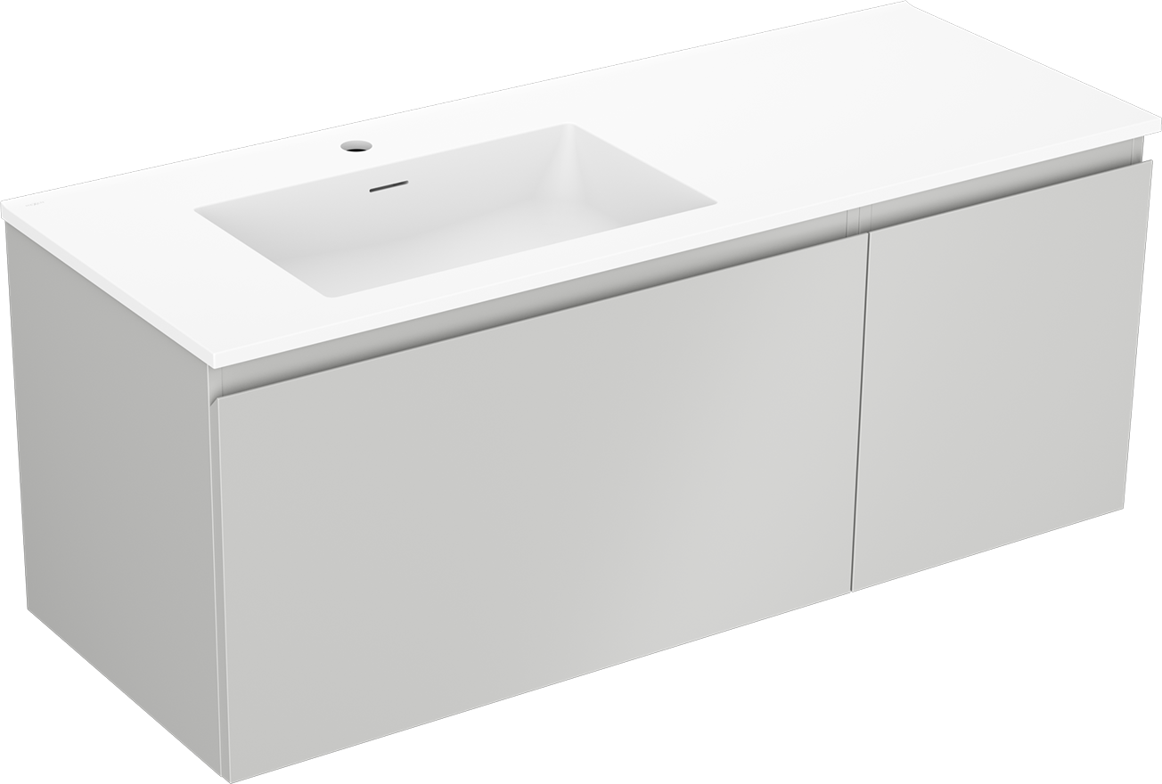 Mexen Orio bathroom cabinet 120 cm with Otis left sink, 1S, 1D, gray matte/white matte - 91A13-12047-3-BBFF62-W18L01