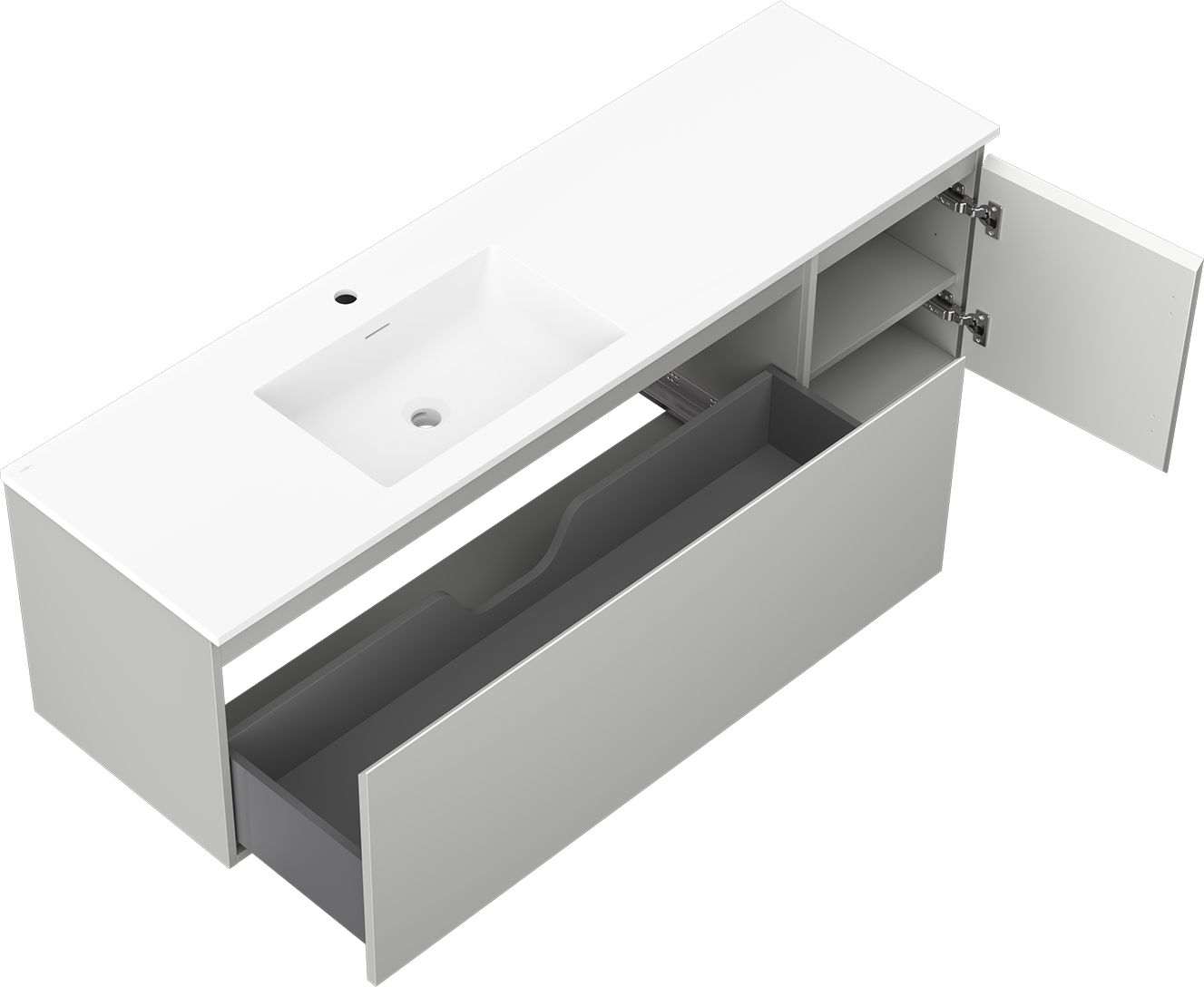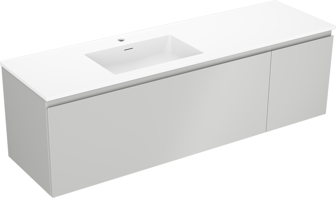 Mexen Orio bathroom cabinet 160 cm with Otis left sink, 1S, 1D, gray matte/white matte - 91A13-16047-3-BBFF62-W18L01
