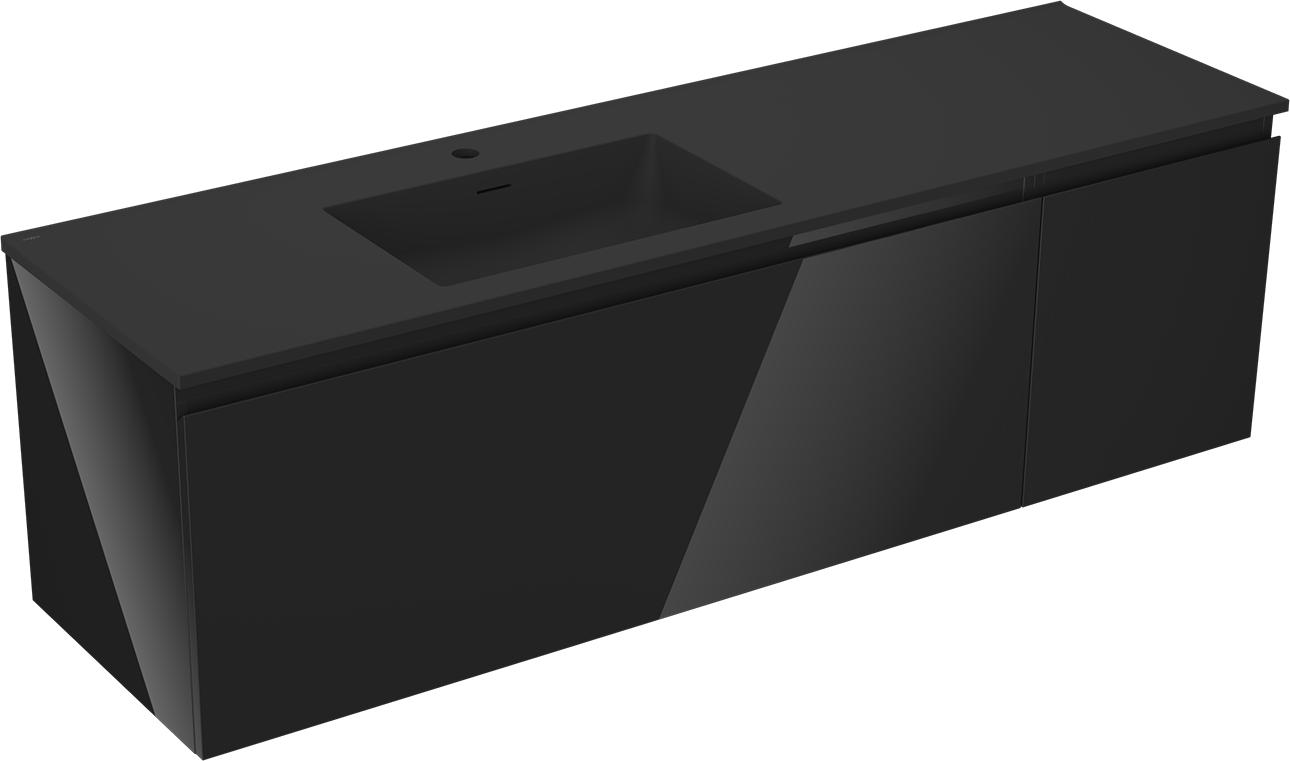 Mexen Orio 160 cm Bathroom Cabinet with Otis Left Sink, 1S, 1D, Black Gloss/Black Matte - 91A13-16047-3-BBFF70-W18L71