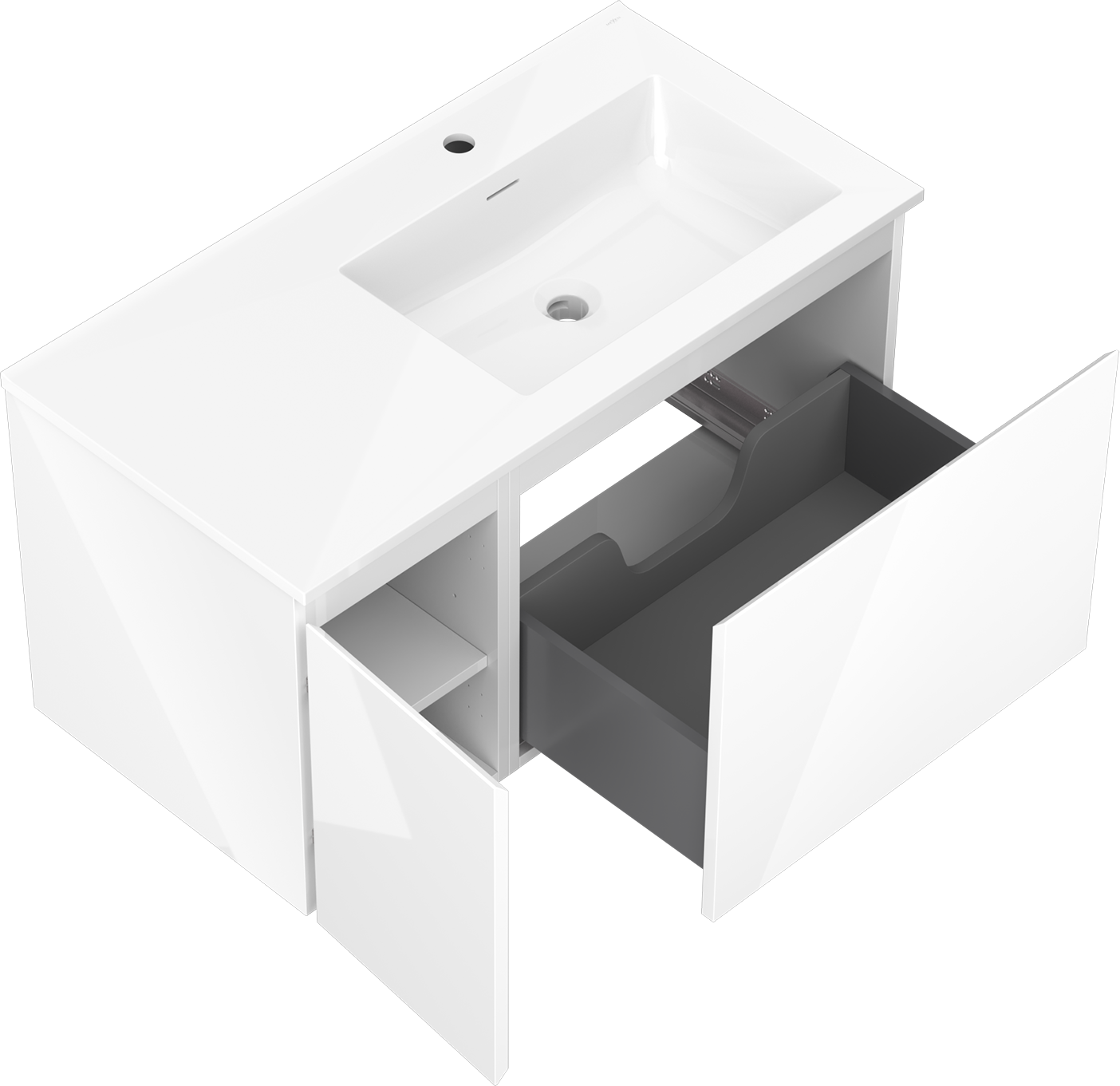Mexen Orio bathroom cabinet 90 cm with right Otis sink, 1S, 1D, white gloss - 91A13-09047-3-BBFF00-W18P00