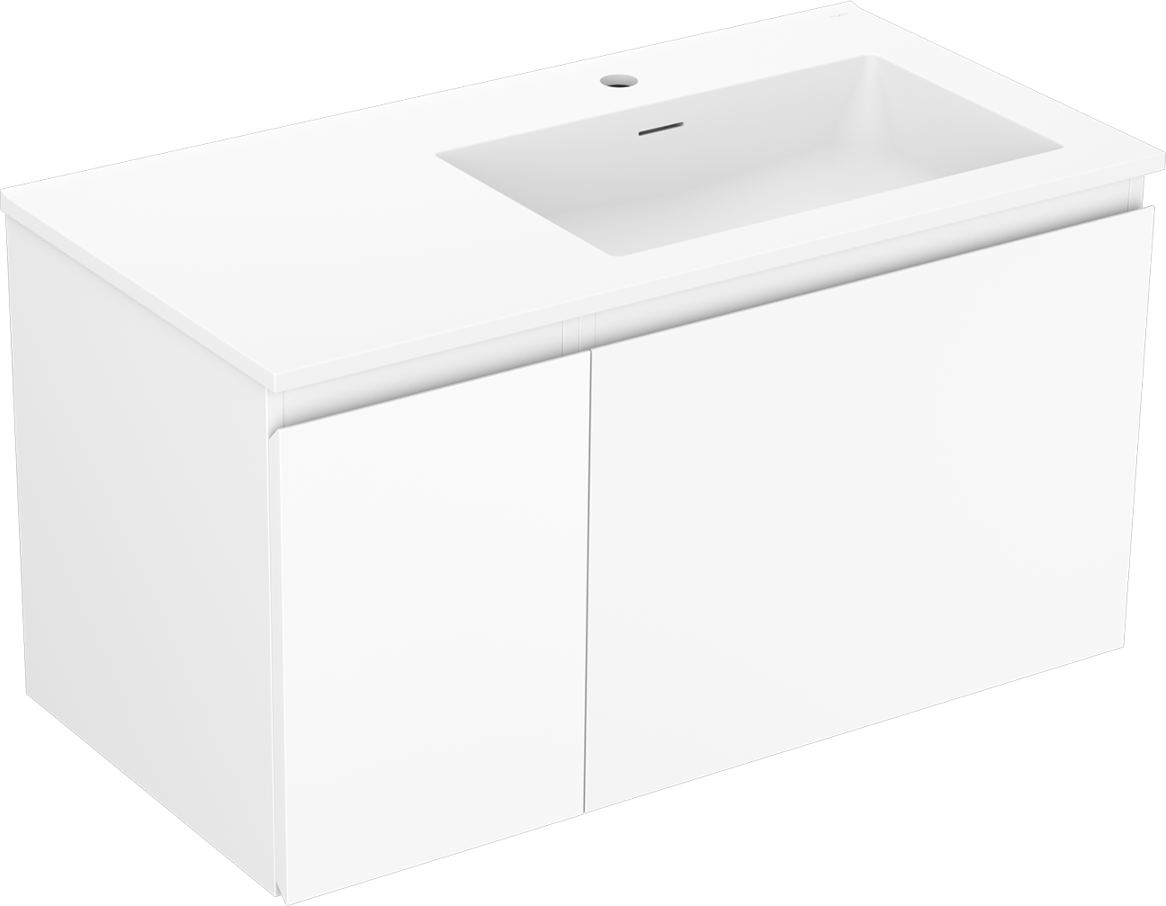 Mexen Orio bathroom cabinet 90 cm with Otis right sink, 1S, 1D, white matte - 91A13-09047-3-BBFF01-W18P01