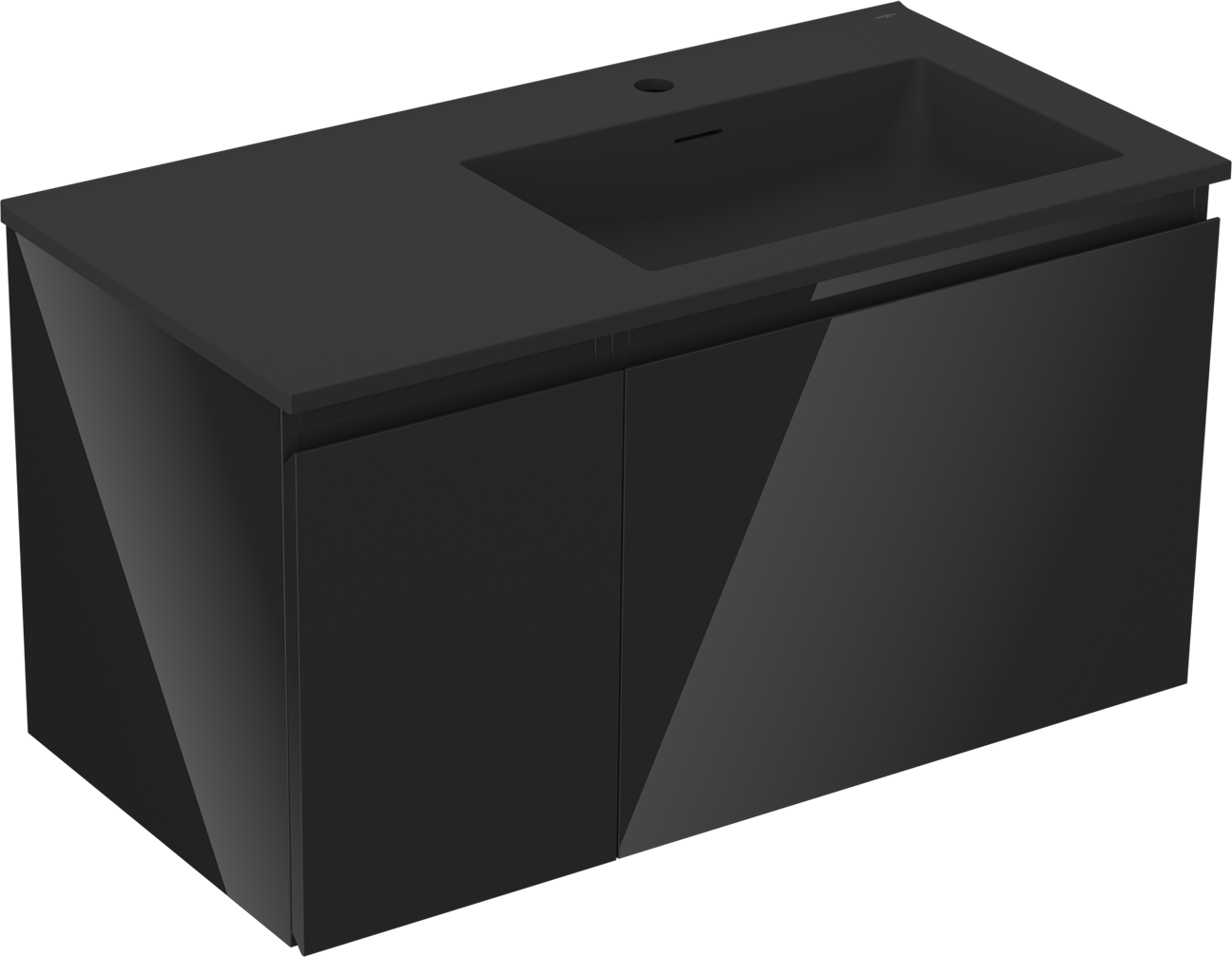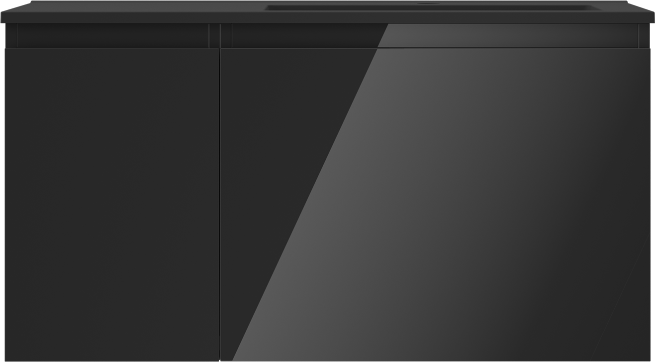 Mexen Orio bathroom cabinet 90 cm with Otis right sink, 1S, 1D, black gloss/black matte - 91A13-09047-3-BBFF70-W18P71