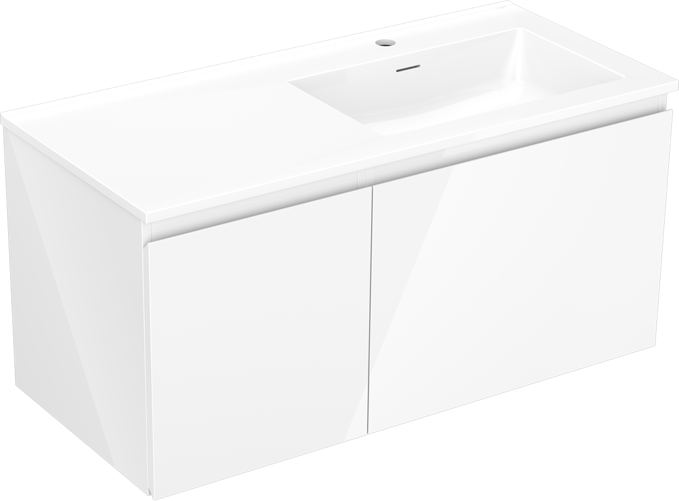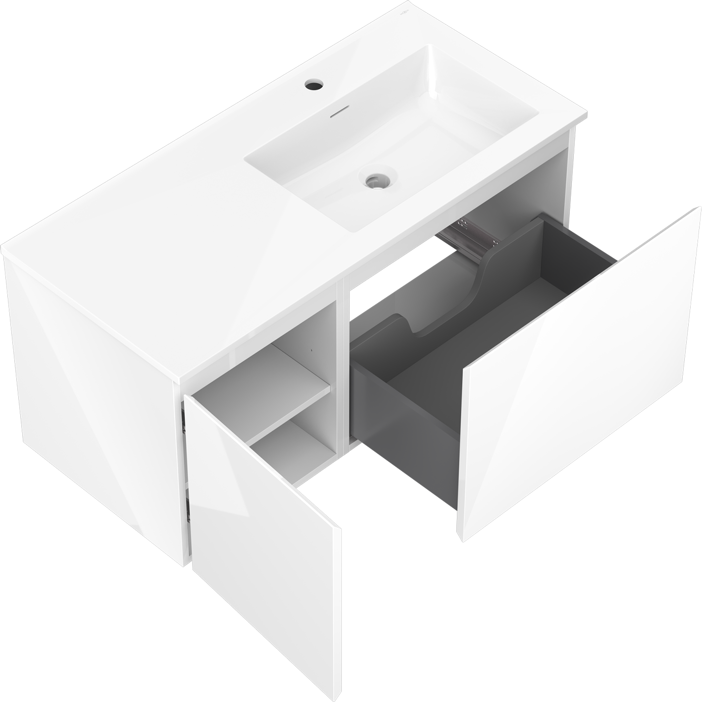 Mexen Orio bathroom cabinet 100 cm with Otis right sink, 1S, 1D, white gloss - 91A13-10047-3-BBFF00-W18P00