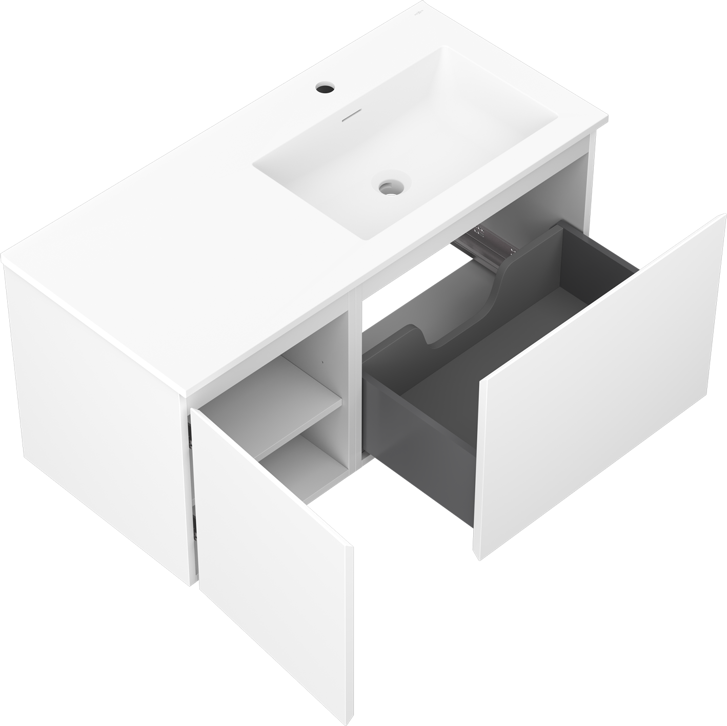 Mexen Orio bathroom cabinet 100 cm with Otis right sink, 1S, 1D, white matte - 91A13-10047-3-BBFF01-W18P01