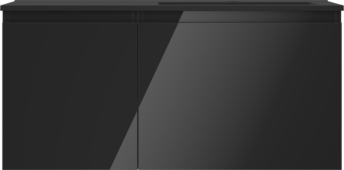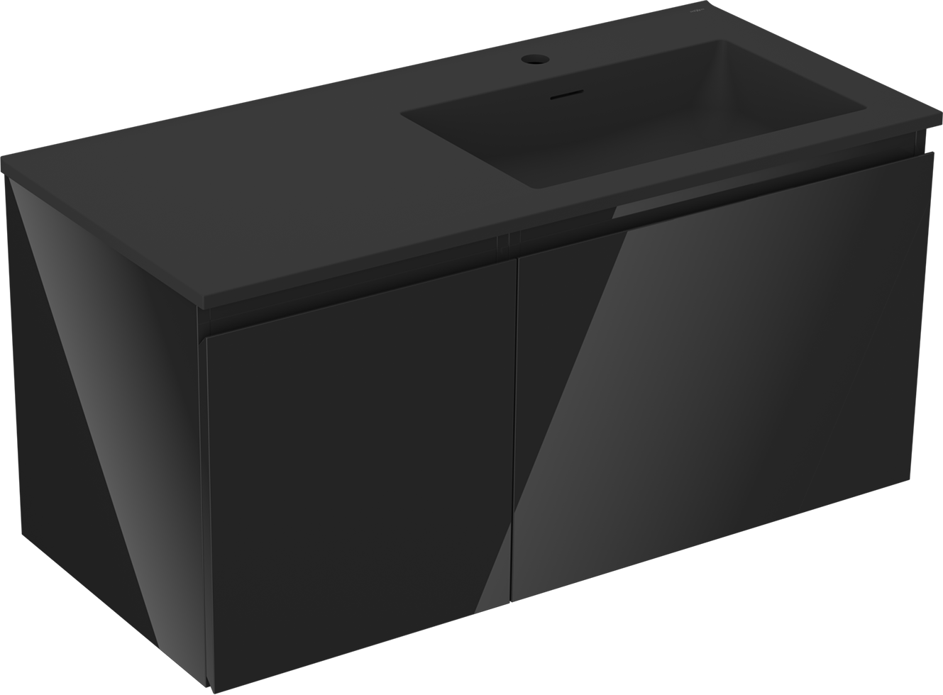 Mexen Orio bathroom cabinet 100 cm with right Otis sink, 1S, 1D, black gloss/black matte - 91A13-10047-3-BBFF70-W18P71