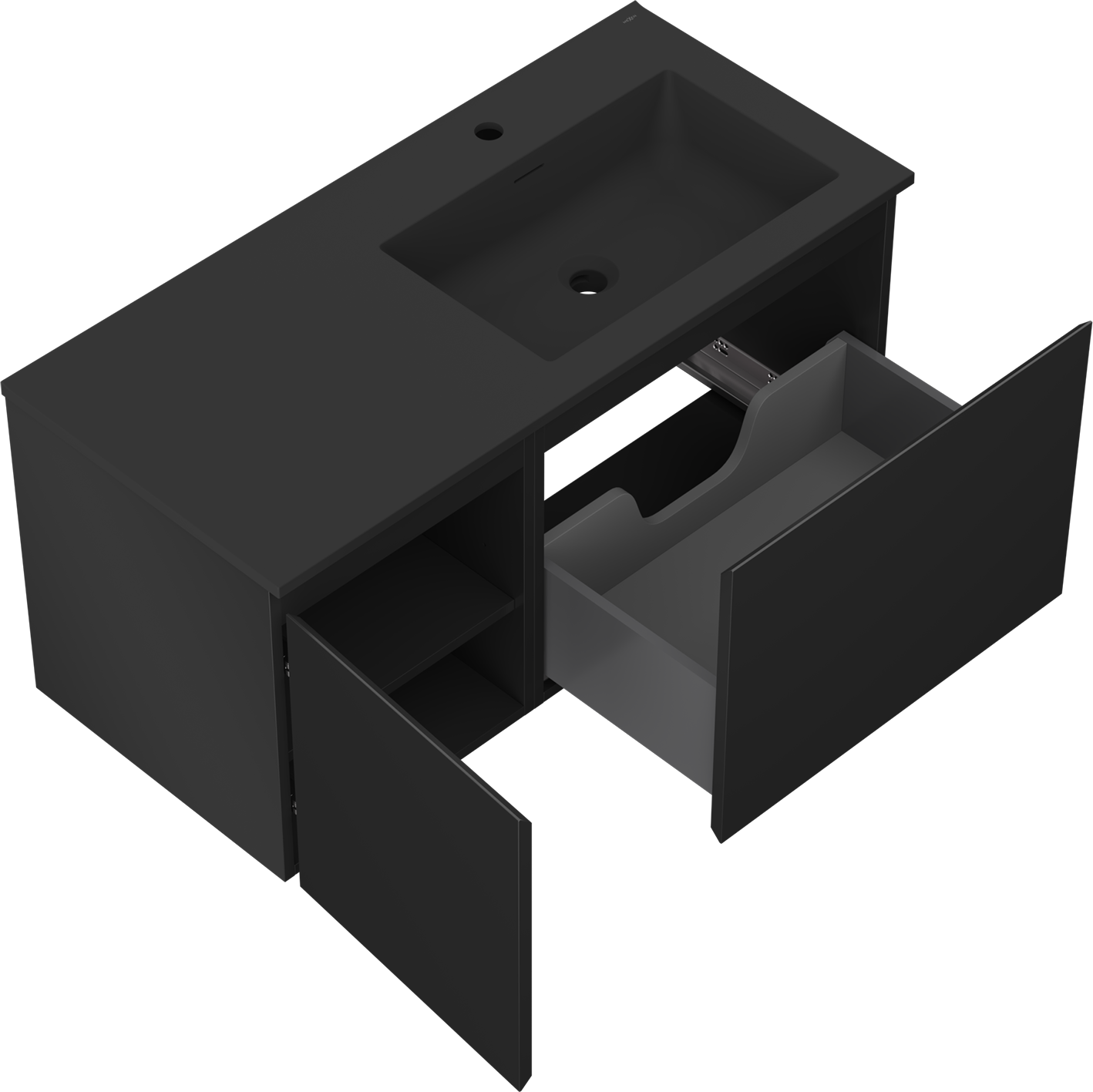 Mexen Orio bathroom cabinet 100 cm with Otis right-sided sink, 1 drawer, 1 door, black matte - 91A13-10047-3-BBFF71-W18P71