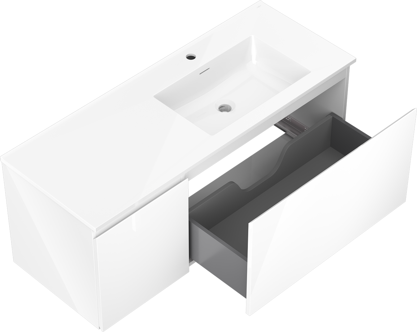 Mexen Orio bathroom cabinet 120 cm with Otis right sink, 1S, 1D, white gloss - 91A13-12047-3-BBFF00-W18P00