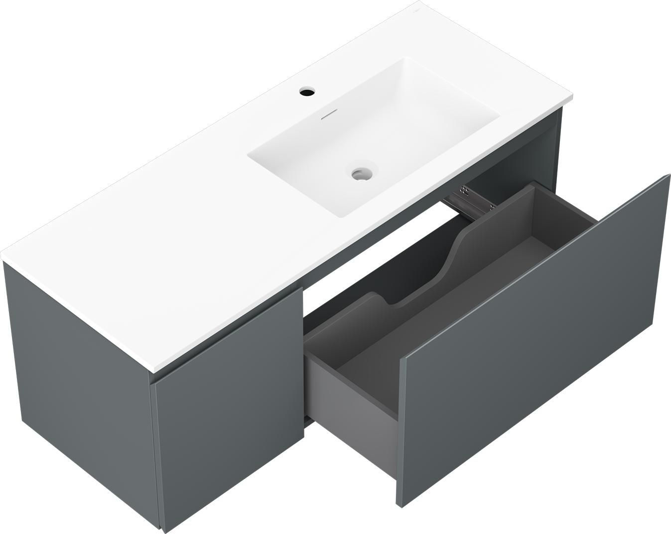 Mexen Orio bathroom cabinet 120 cm with Otis right sink, 1S, 1D, graphite matte/white matte - 91A13-12047-3-BBFF66-W18P01