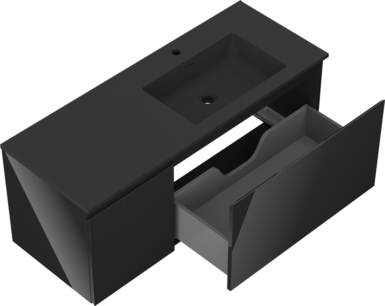 Mexen Orio bathroom cabinet 120 cm with Otis right sink, 1S, 1D, black gloss/black matte - 91A13-12047-3-BBFF70-W18P71