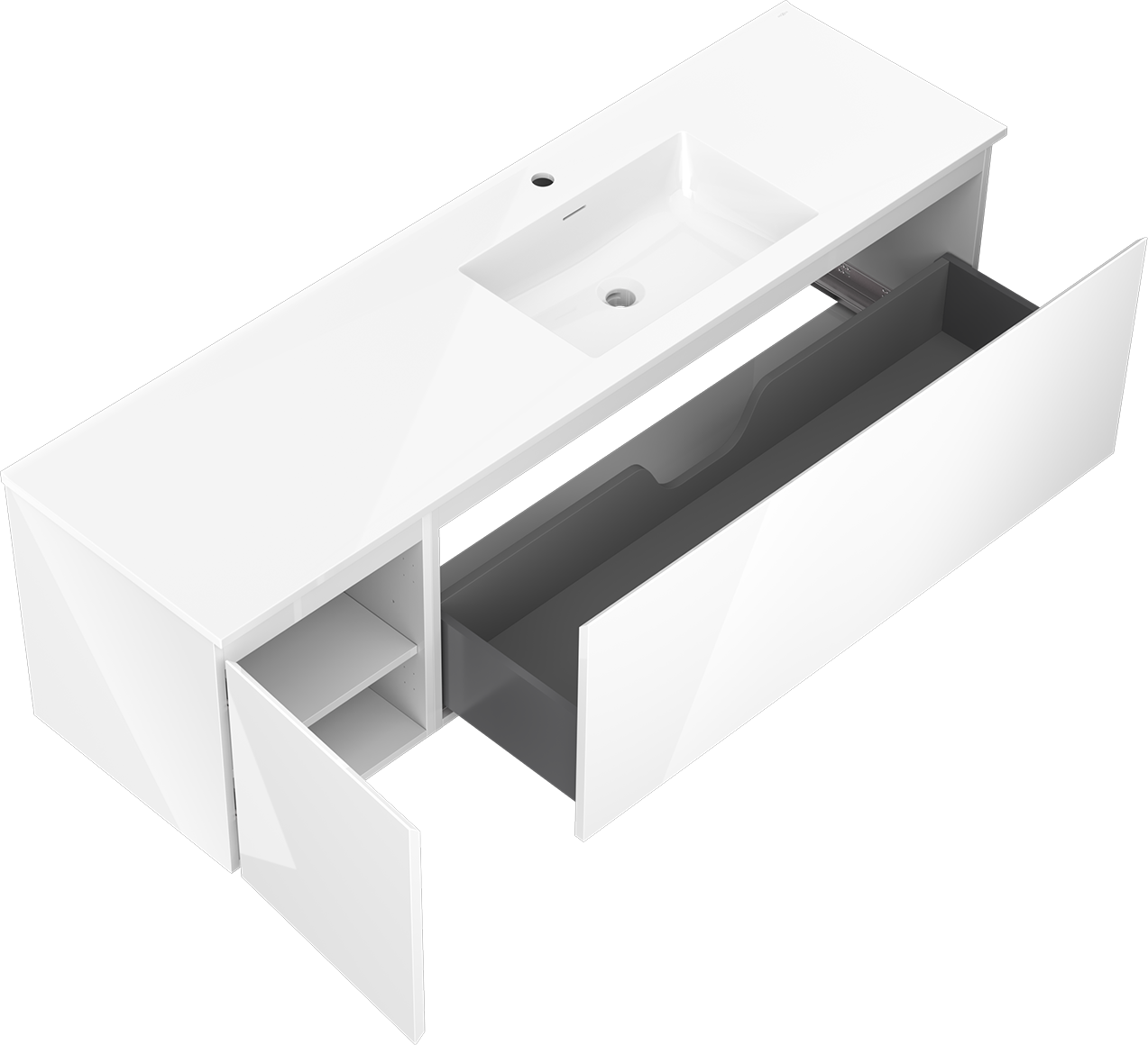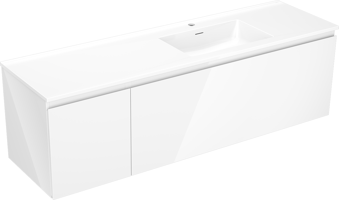 Mexen Orio bathroom cabinet 160 cm with Otis right washbasin, 1S, 1D, white gloss - 91A13-16047-3-BBFF00-W18P00