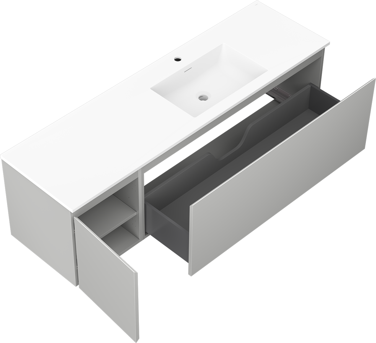 Mexen Orio bathroom cabinet 160 cm with right Otis sink, 1S, 1D, gray matte/white matte - 91A13-16047-3-BBFF62-W18P01