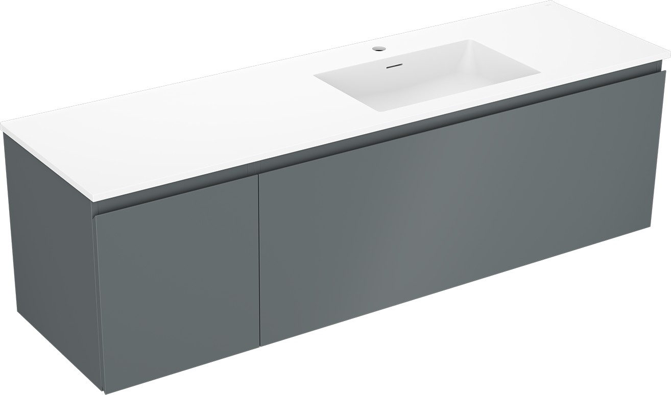 Mexen Orio bathroom cabinet 160 cm with Otis right sink, 1S, 1D, matte graphite/white matte - 91A13-16047-3-BBFF66-W18P01