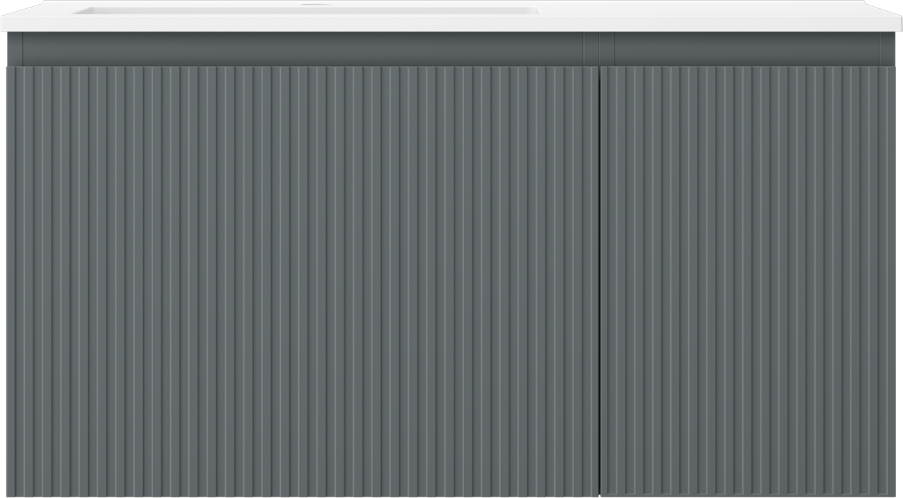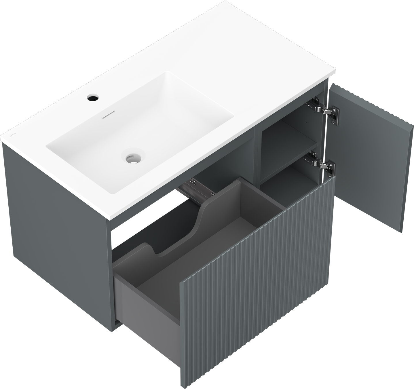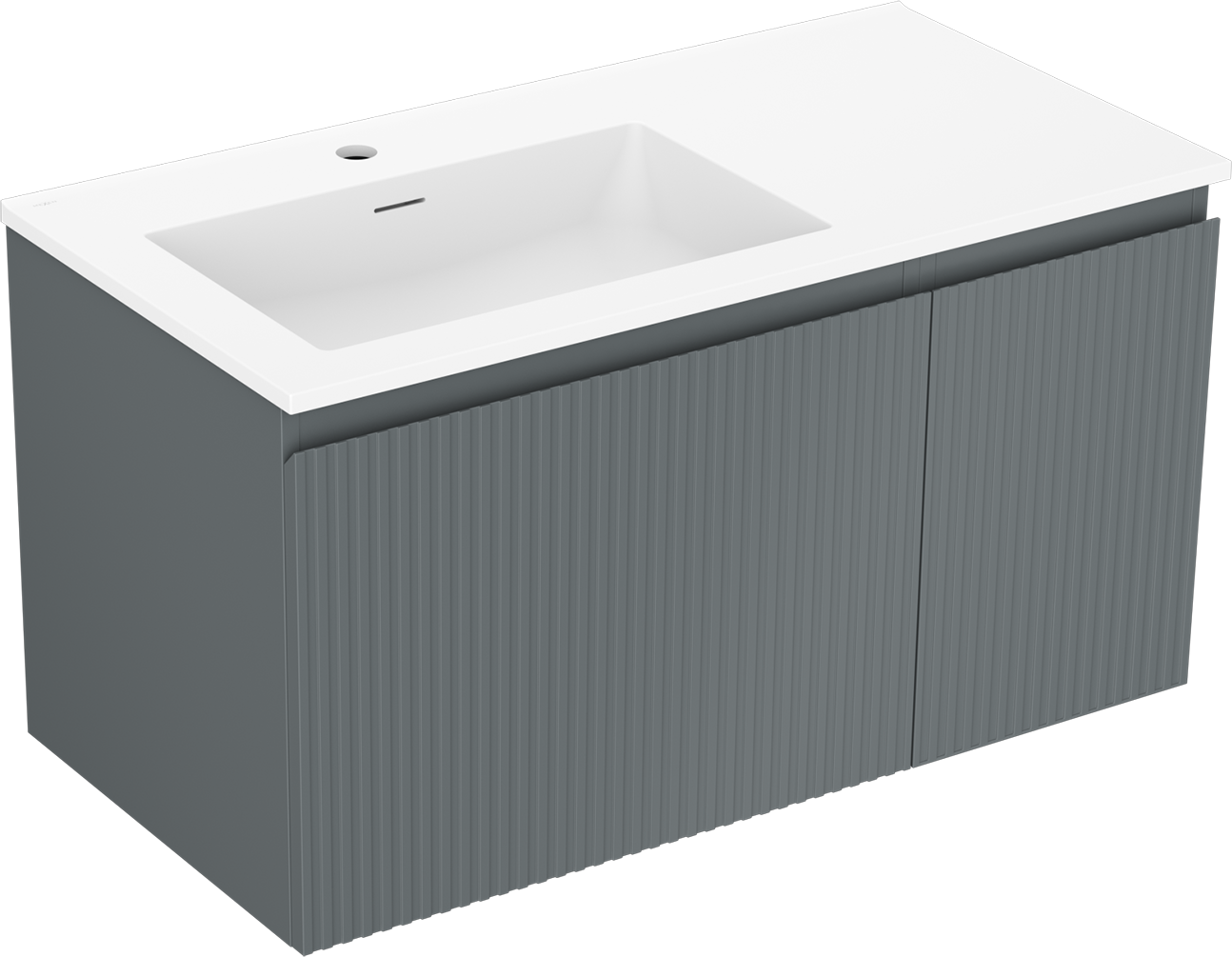 Mexen Rivel bathroom cabinet 90 cm with Otis left basin, 1S, 1D, fluted, graphite matte/white matte