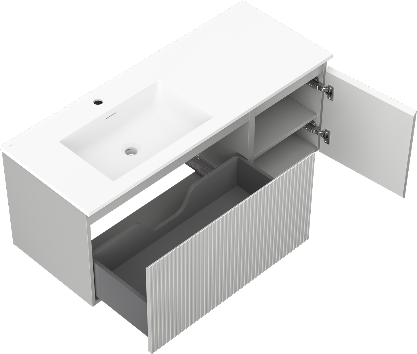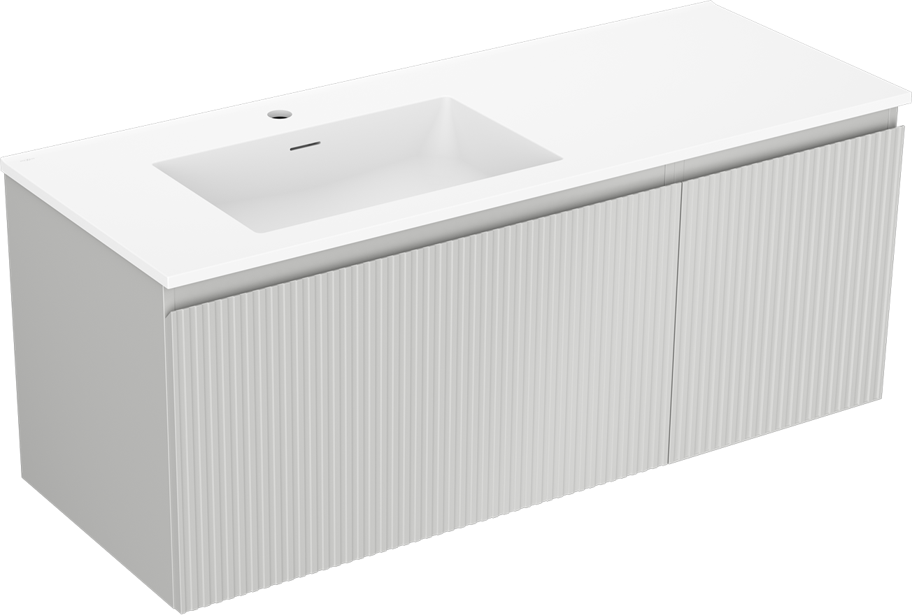 Mexen Rivel bathroom cabinet 120 cm with left sink Otis, 1S, 1D, grooved, gray matte/white matte - 91A23-12047-3-BBFF62-W18L01
