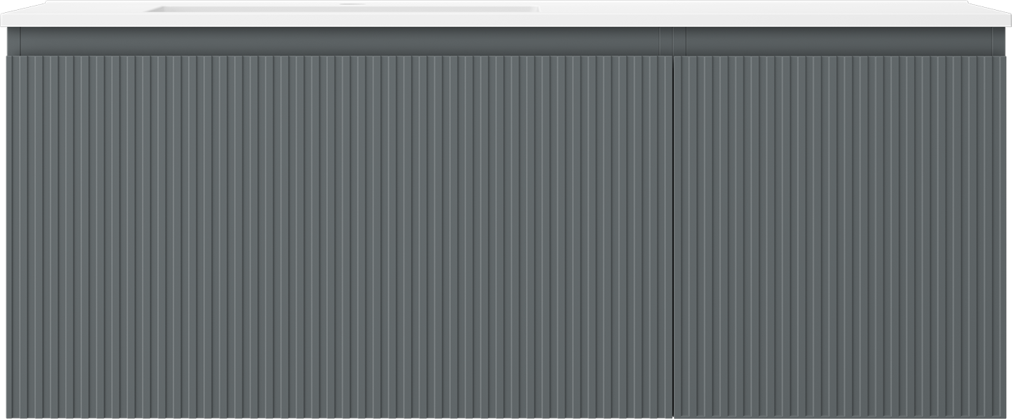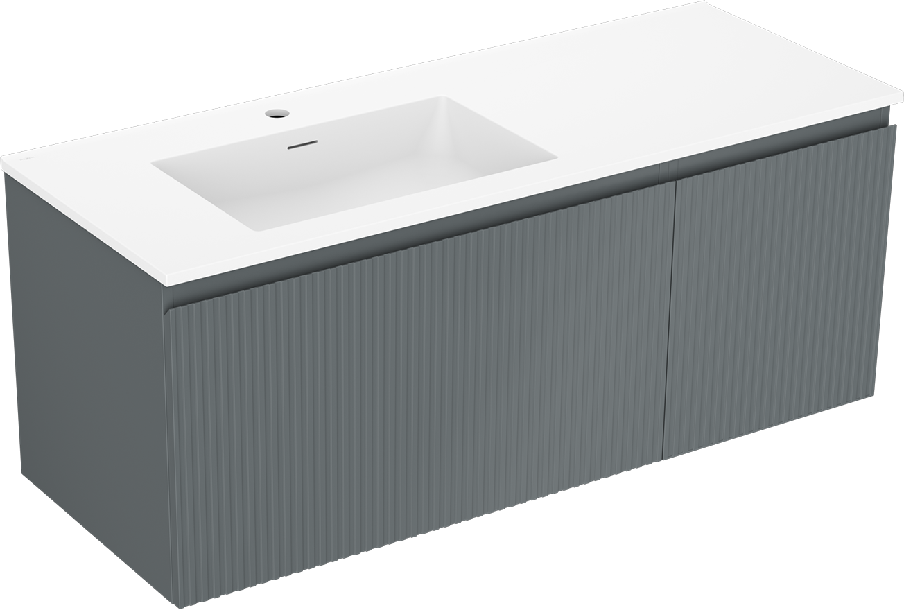 Mexen Rivel bathroom cabinet 120 cm with Otis sink on the left, 1 drawer, 1 door, grooved, matte graphite/matte white