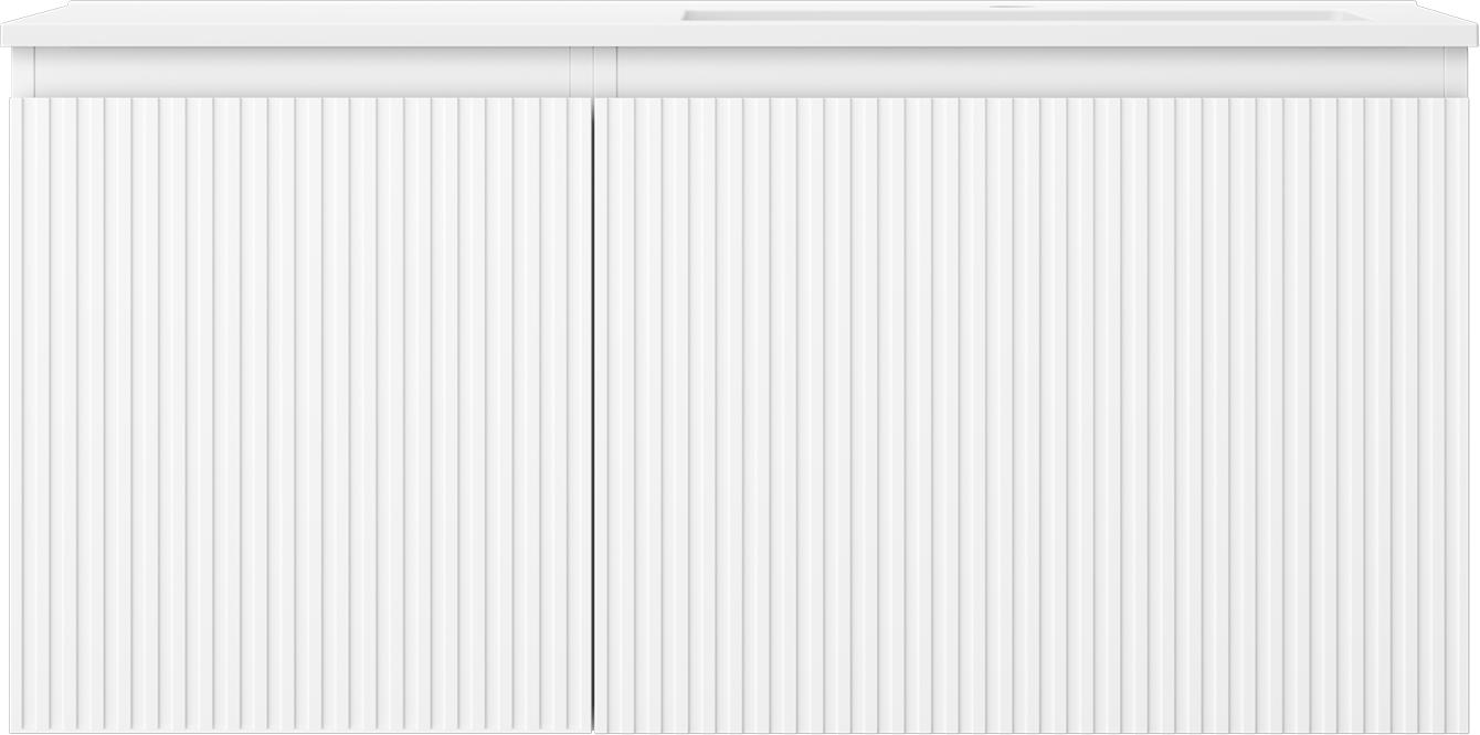 Mexen Rivel bathroom cabinet 100 cm with Otis sink right, 1S, 1D, grooved, white matte - 91A23-10047-3-BBFF01-W18P01
