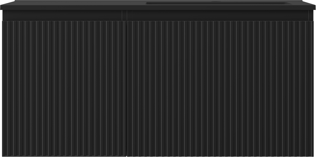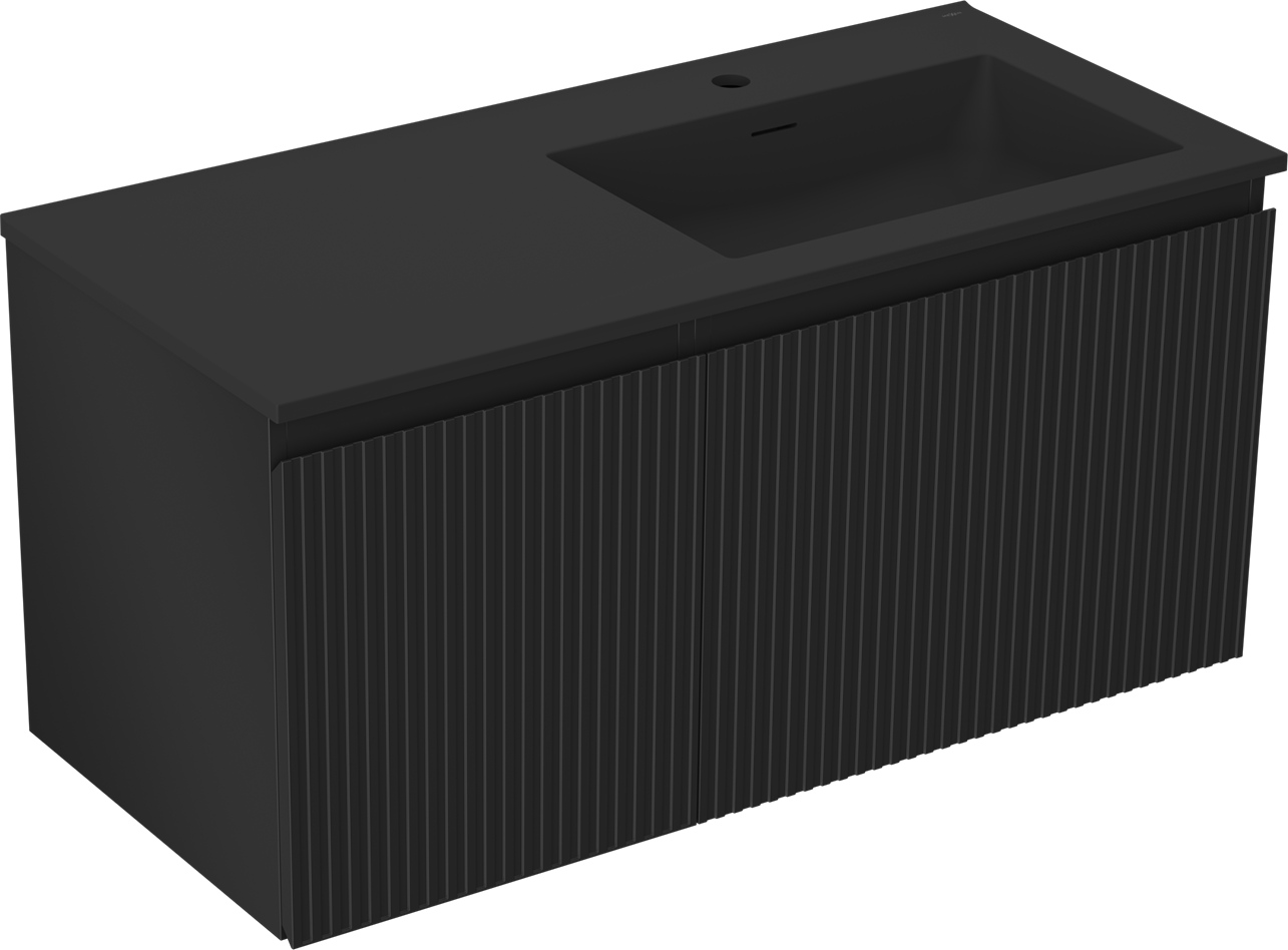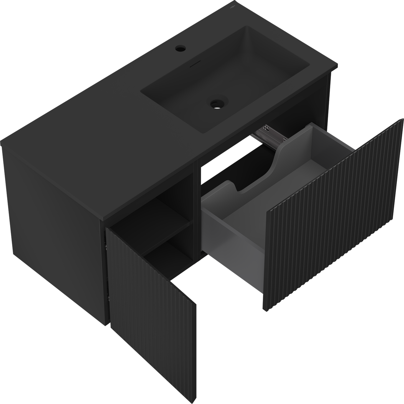 Mexen Rivel bathroom cabinet 100 cm with Otis sink on the right, 1S, 1D, grooved, black matte - 91A23-10047-3-BBFF71-W18P71