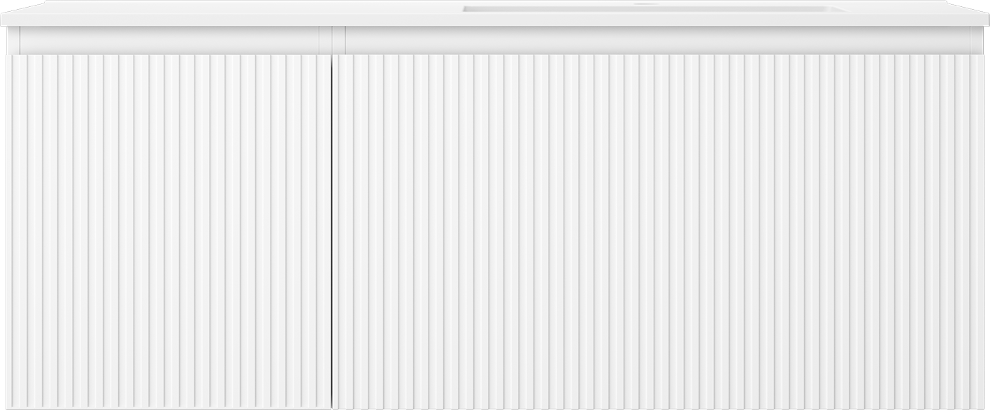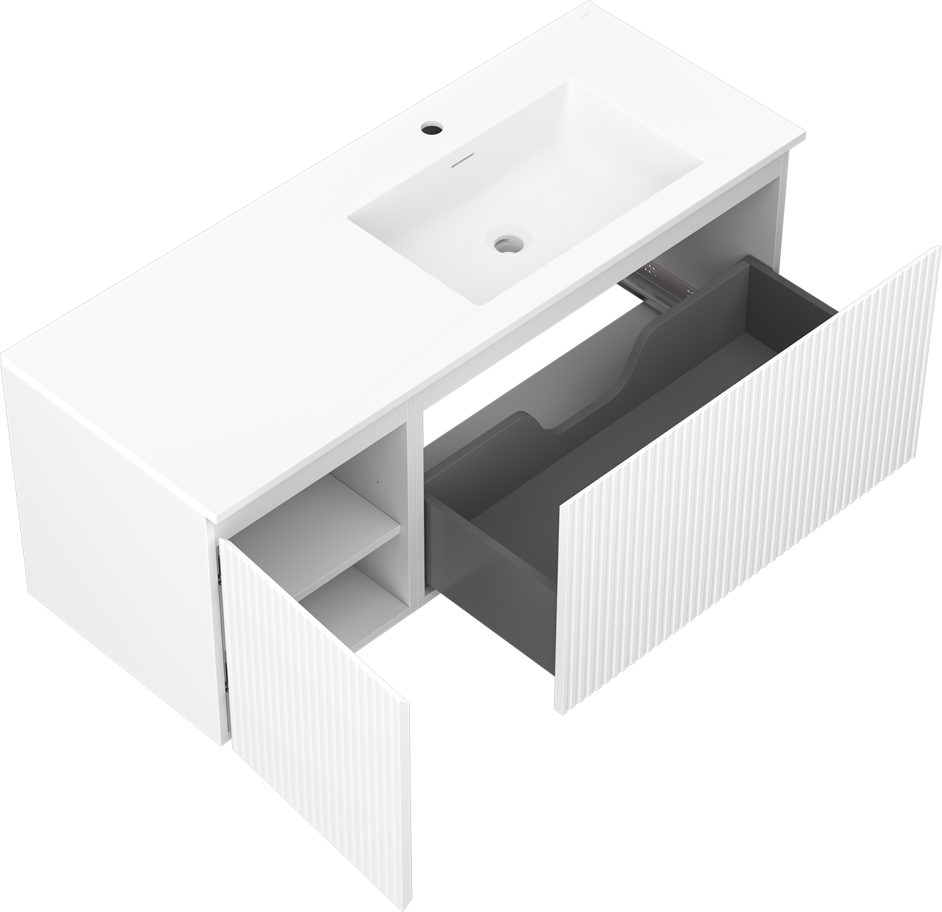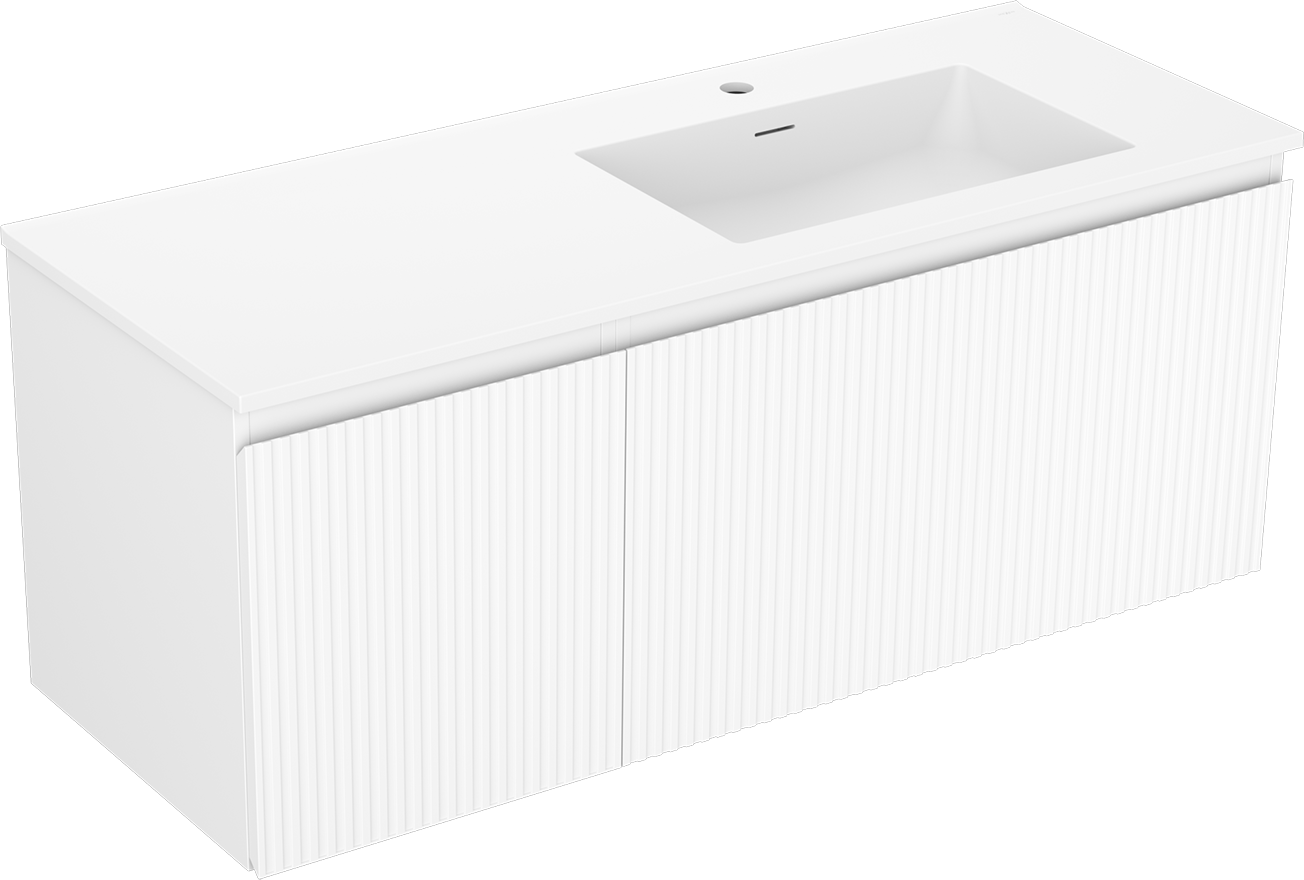 Mexen Rivel bathroom cabinet 120 cm with Otis right sink, 1S, 1D, ribbed, matte white - 91A23-12047-3-BBFF01-W18P01
