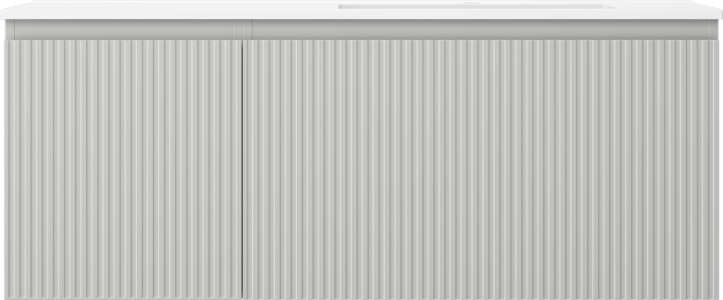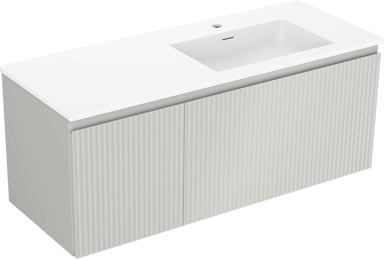 Mexen Rivel bathroom cabinet 120 cm with Otis right sink, 1S, 1D, fluted, gray matte/white matte - 91A23-12047-3-BBFF62-W18P01
