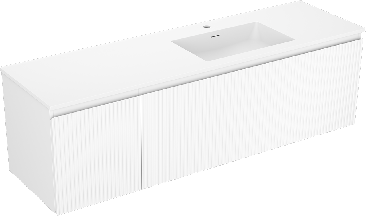 Mexen Rivel 160 cm Bathroom Cabinet with Otis Right Sink, 1 Drawer, 1 Door, Grooved, Matte White - 91A23-16047-3-BBFF01-W18P01