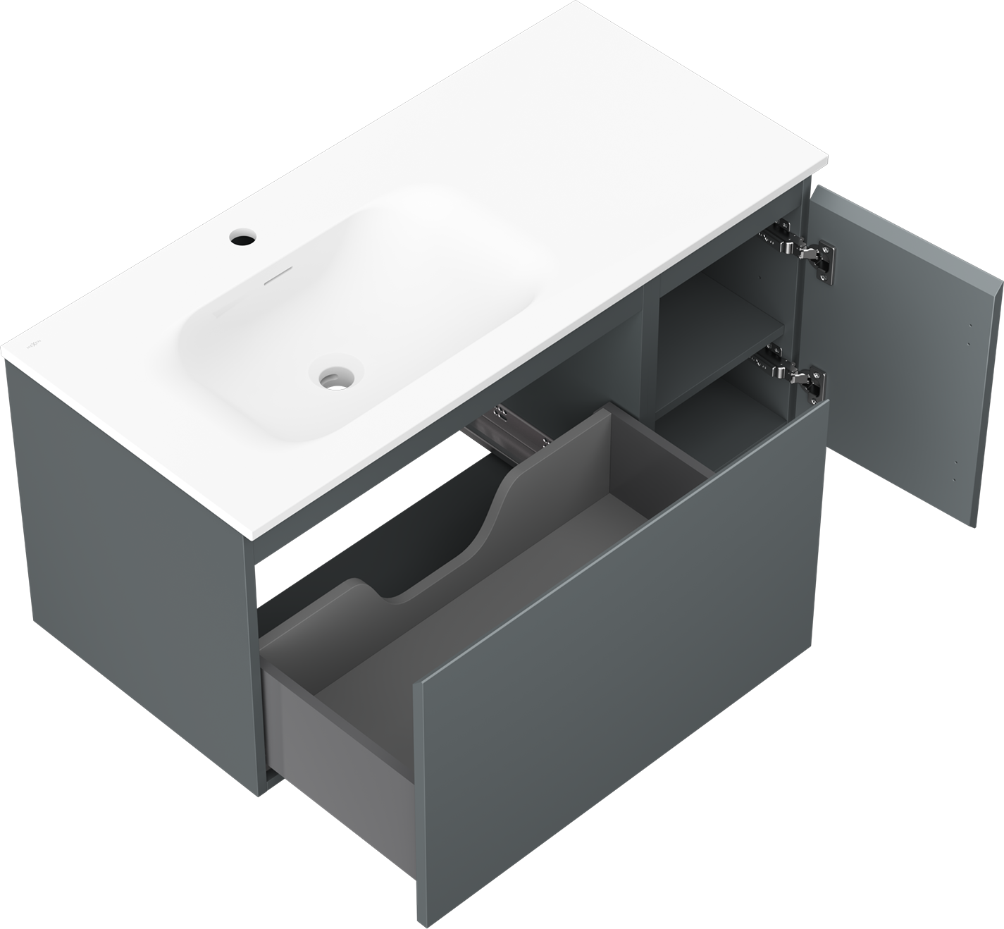The cutout in the drawer is designed in such a way as to accommodate the siphon, which is essential in sink installations. This allows the furniture to be fully functional without having to give up drawer space for the installation.
