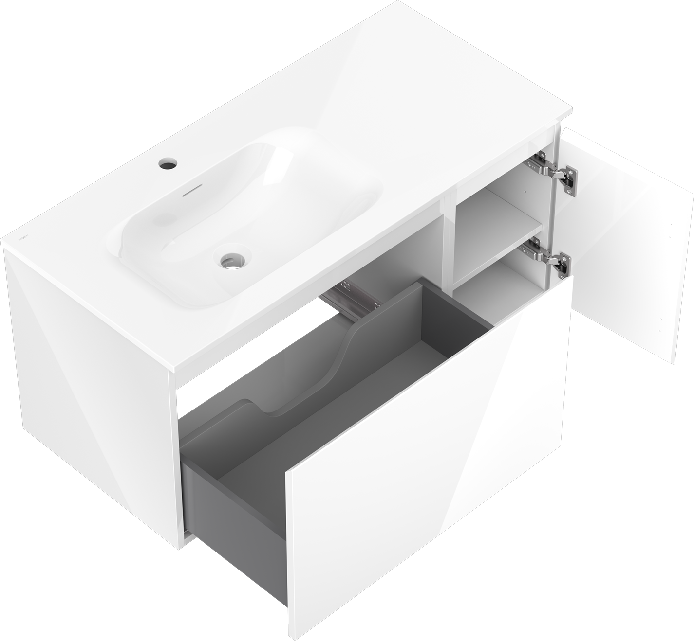 The cutout in the drawer is designed in such a way as to accommodate the siphon, which is essential in sink installations. This allows the furniture to be fully functional without having to give up drawer space for the installation.