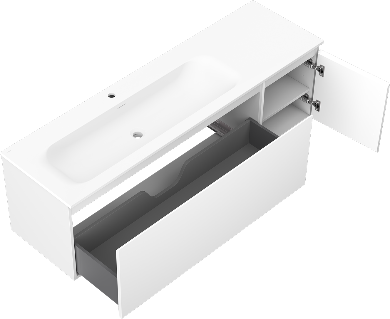 Our modular bathroom furniture can be combined in various colour configurations, allowing for complete personalisation. You can choose both the appearance and functions of individual elements, enabling you to adapt the furniture to your own stylistic and functional preferences.