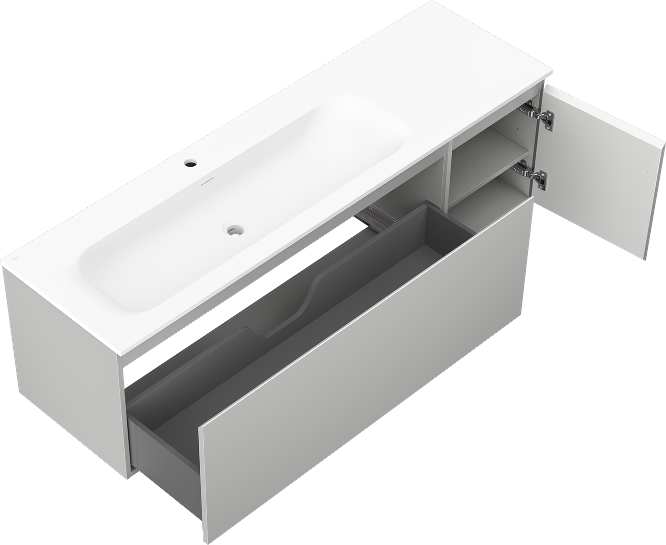 Our modular bathroom furniture can be combined in various colour configurations, allowing for complete personalisation. You can choose both the appearance and functions of individual elements, enabling you to adapt the furniture to your own stylistic and functional preferences.