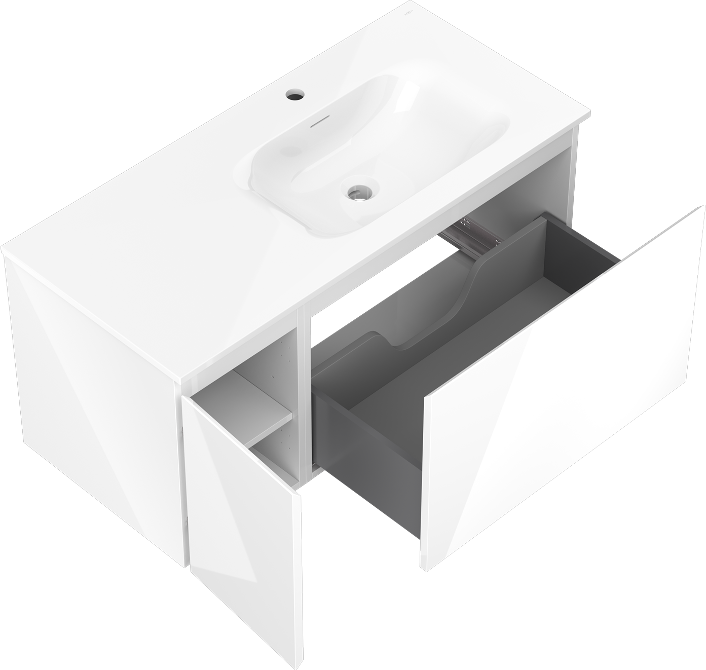 The cutout in the drawer is designed in such a way as to accommodate the siphon, which is essential in sink installations. This allows the furniture to be fully functional without having to give up drawer space for the installation.