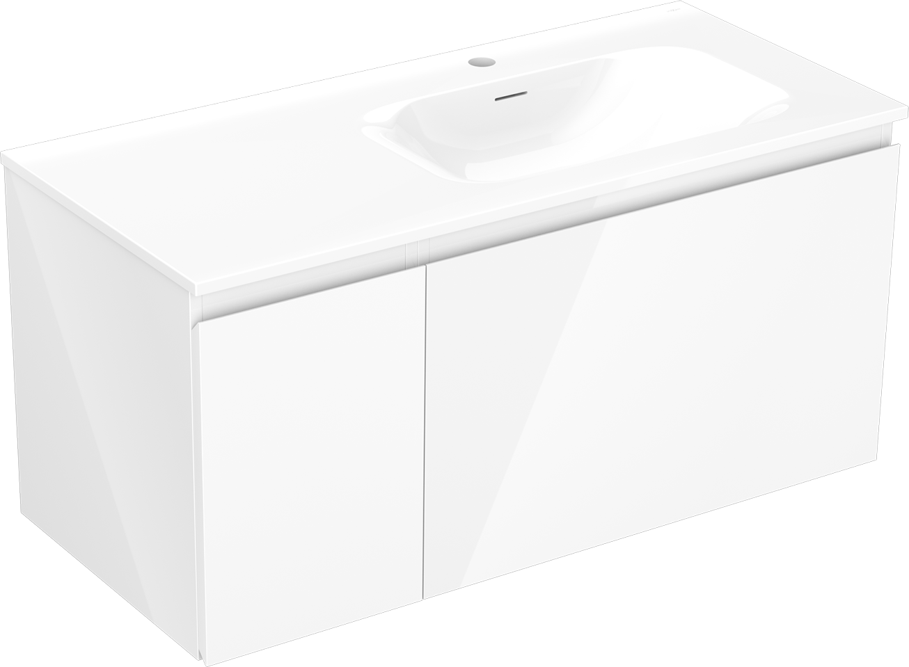 Mexen Orio bathroom cabinet 100 cm with Vela sink right, 1S, 1D, white gloss - 91A13-10047-3-BBFF00-W23P00