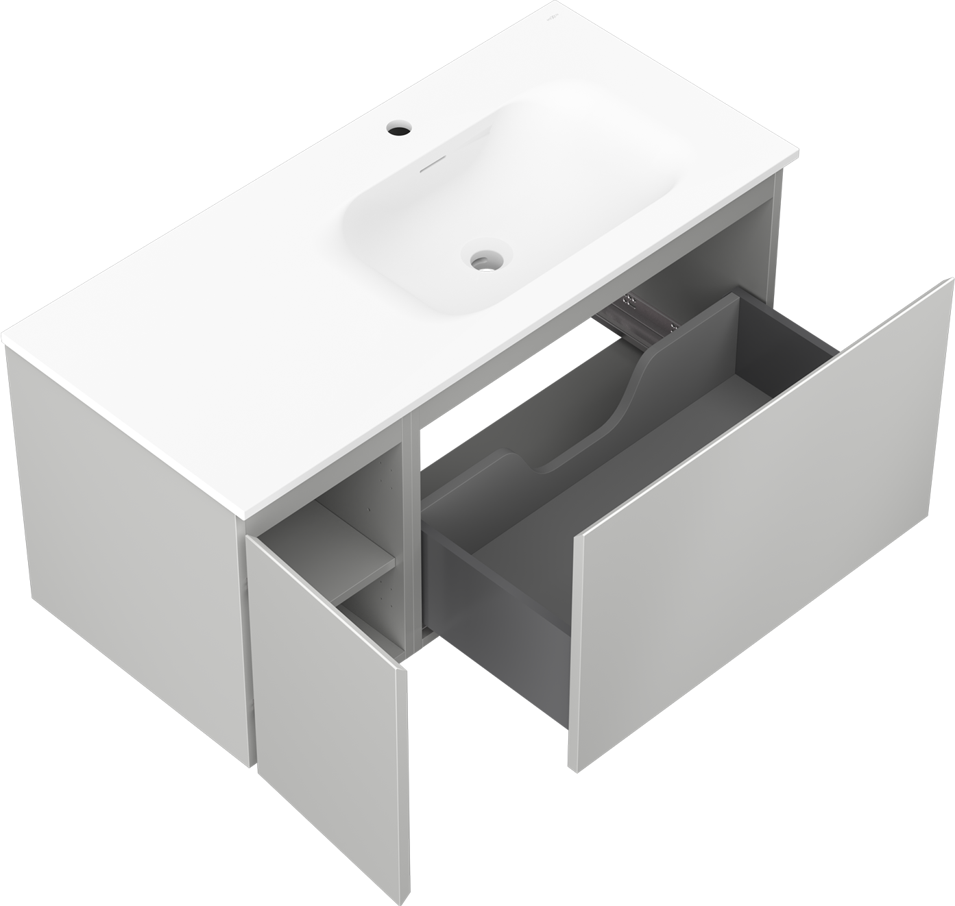 The cutout in the drawer is designed in such a way as to accommodate the siphon, which is essential in sink installations. This allows the furniture to be fully functional without having to give up drawer space for the installation.